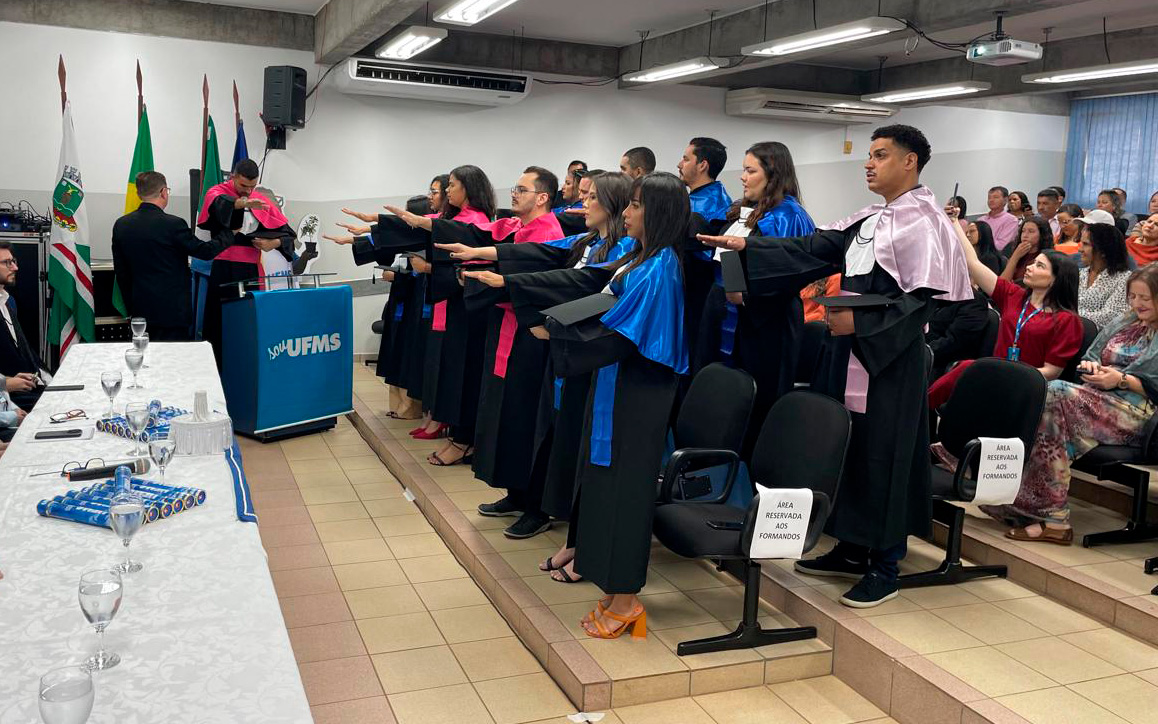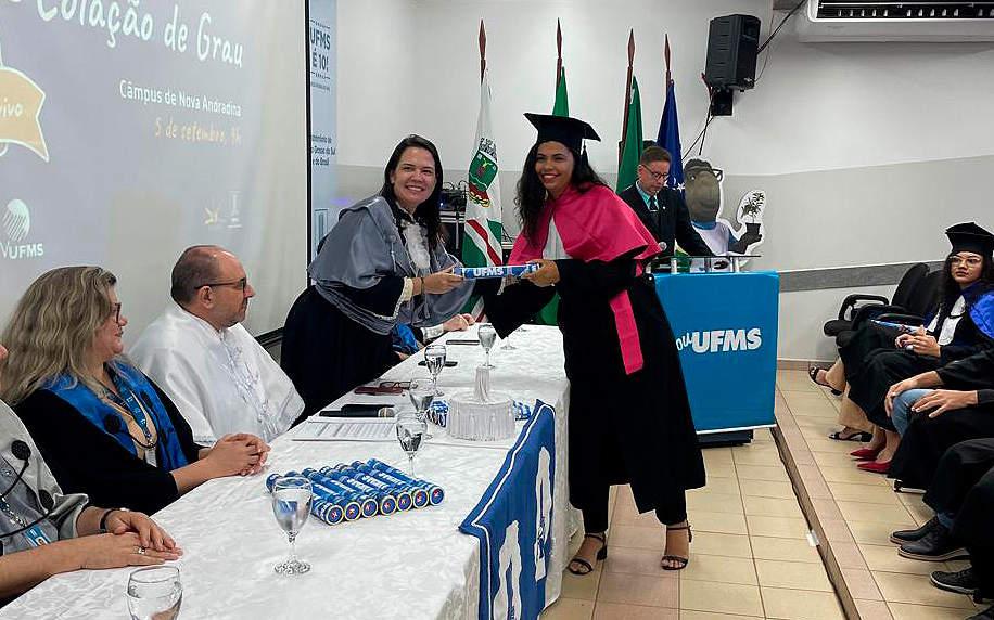 A diretora do CPNA, Solange Fachin, chamou a atenção para o momento de celebração. “Toda formatura é muito emocionante. Adoro esse momento de festa e celebração. Que essa conquista lhes proporcione alegrias, que ter estado na UFMS faça diferença na vida de vocês. Que a conquista de hoje não acabe por aqui, pois a realização profissional requer constantes especializações, qualificações. A Universidade está de portas abertas se quiserem voltar para a pós-graduação ou até outra graduação. Hoje, vocês são o nosso orgulho, porque são o fruto do nosso trabalho. Muito sucesso, representem bem o curso de vocês”, ressaltou. Ela também lembrou aos formandos que façam o cadastro na página de egressos da Instituição.