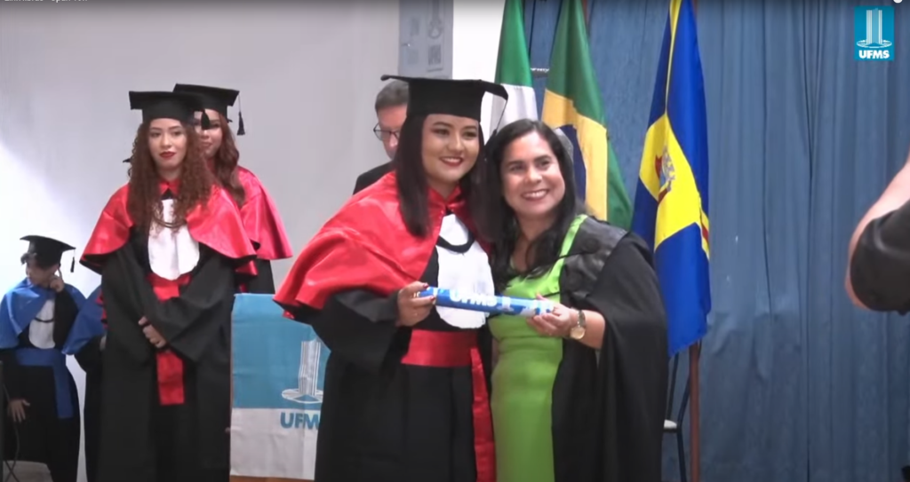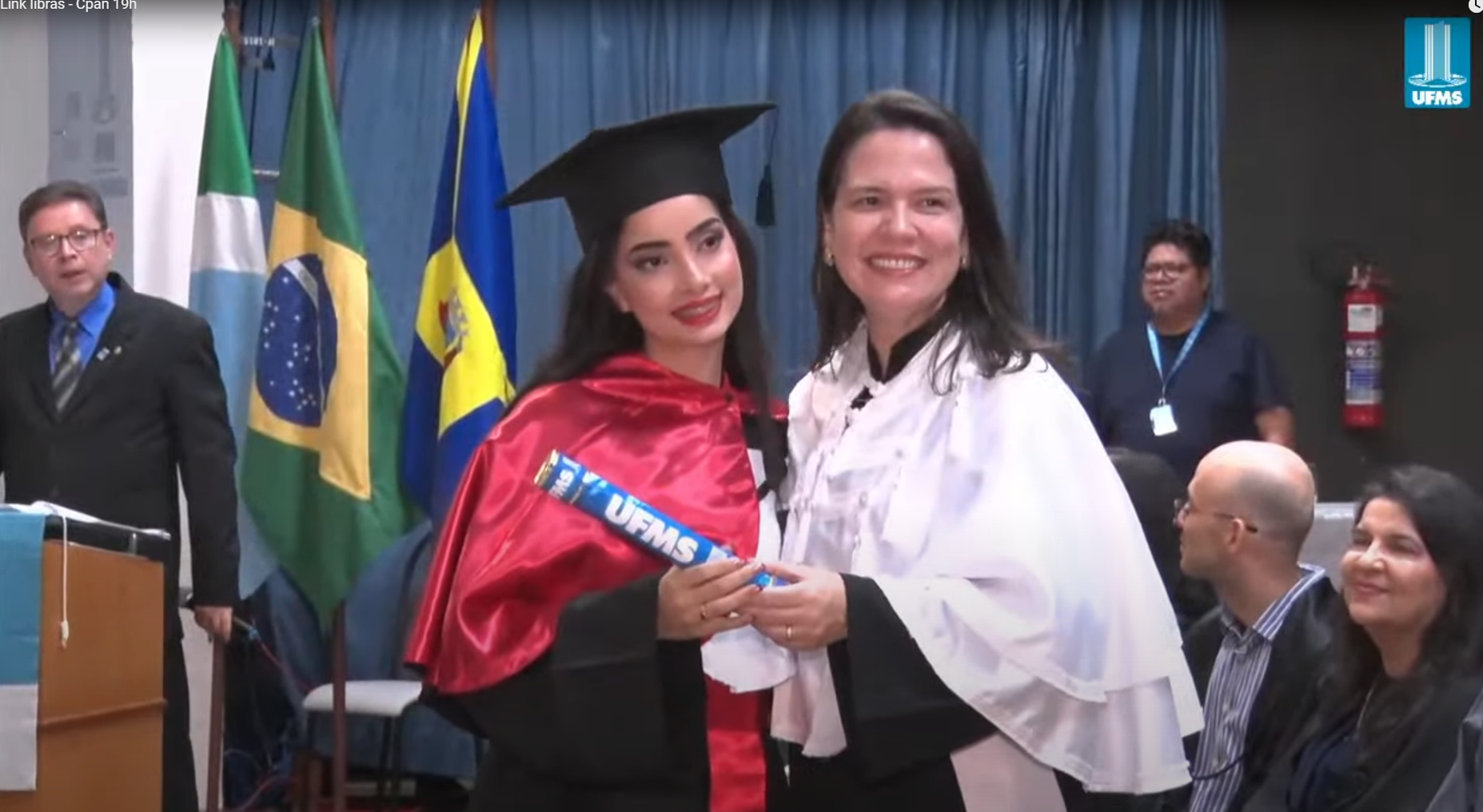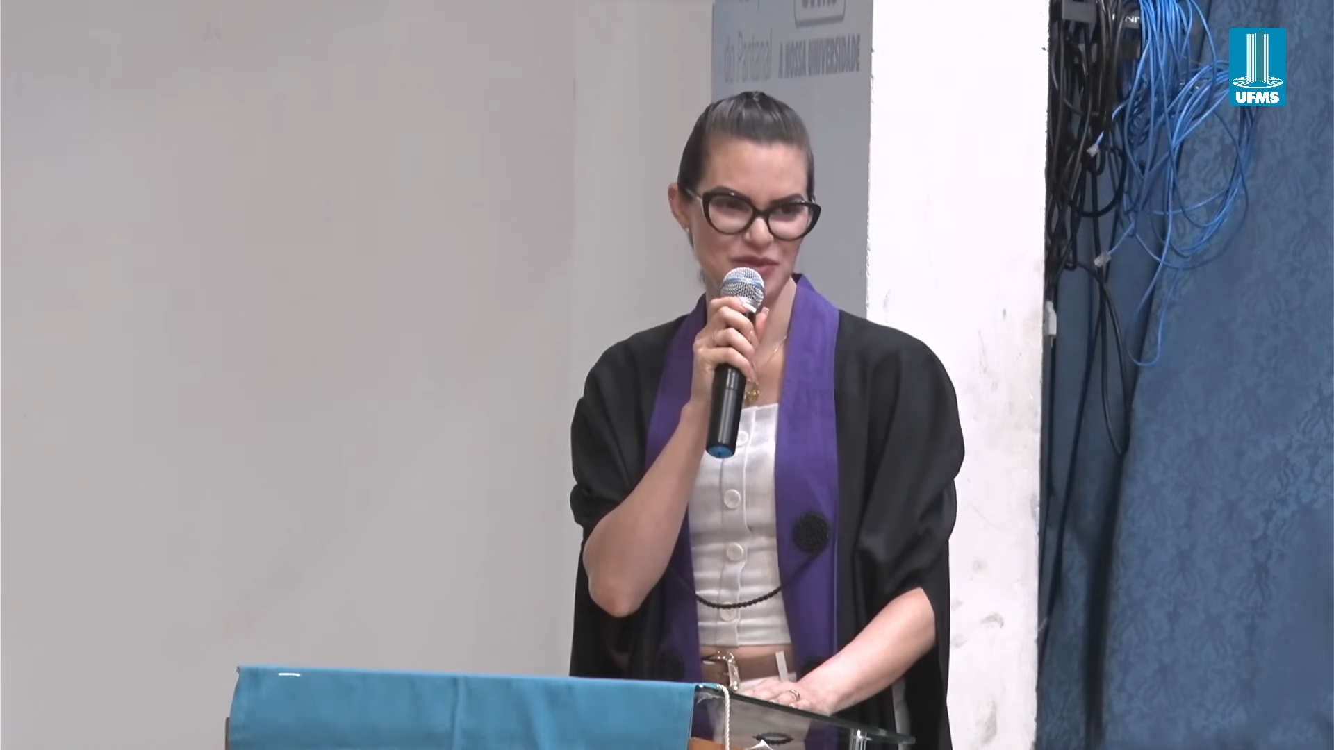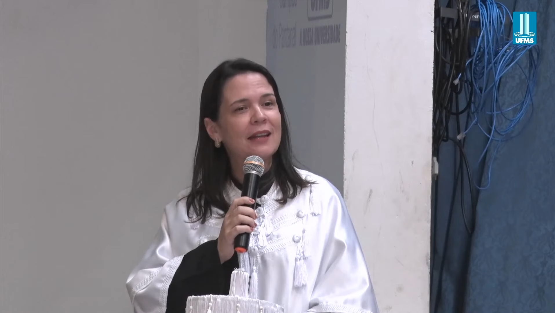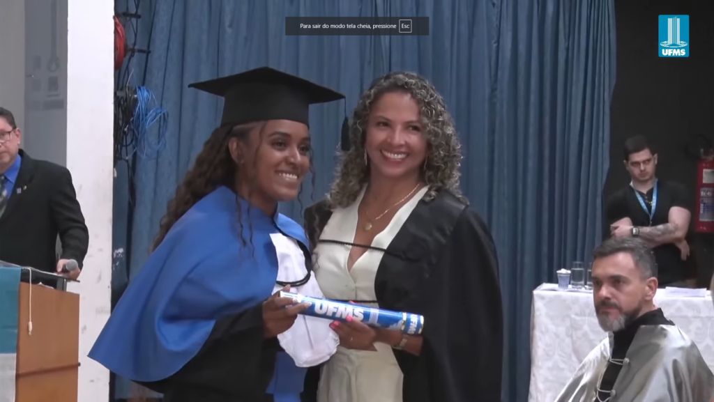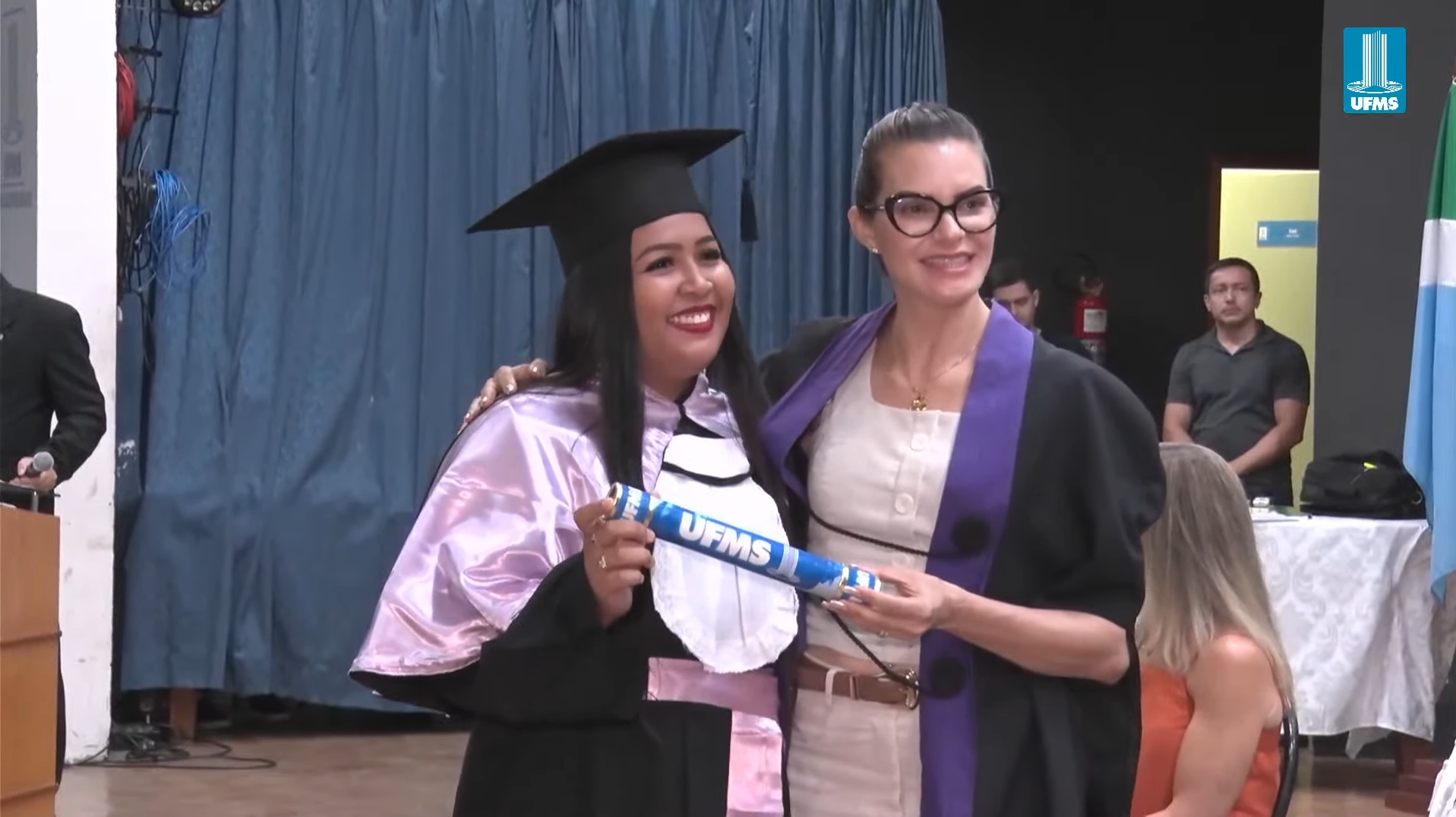 À noite, paraninfa da turma de Direito, a professora Priscila Pinheiro representou os professores homenageados. “O dia de hoje é para ser celebrado com muita alegria. Representa o fechamento de um ciclo e a conquista do tão sonhado título de bacharel, tecnólogo ou licenciado. Concluir uma graduação é um grande privilégio e este momento ficará para sempre na memória de cada um de vocês. Enfrentamos muitos desafios para chegar até aqui, e hoje é o dia de celebrar essa vitória. O amadurecimento faz parte da vida e cada um de vocês sabe o esforço que foi necessário para estar aqui hoje. Nunca se esqueçam de onde começaram e de onde querem chegar. Que possam retribuir à sociedade tudo aquilo que tiveram a oportunidade de aprender na UFMS”, discursou.