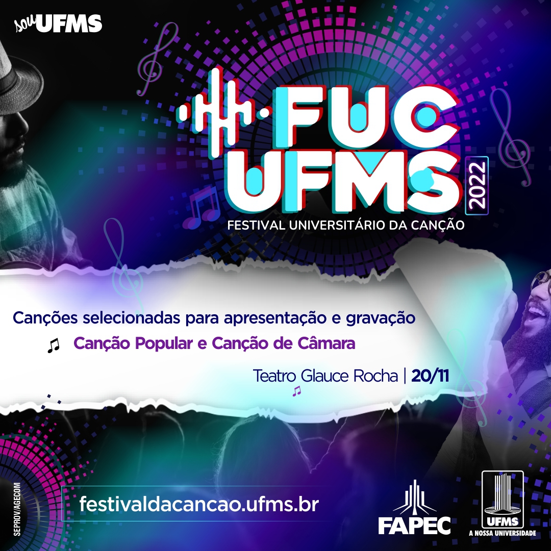 No próximo dia 20, às 19h, o Teatro Glauce Rocha será palco das apresentações das 12 canções selecionadas no Festival Universitário da Canção (FUC), na categoria Canção Popular. A ordem de cada apresentação será definida em sorteio.