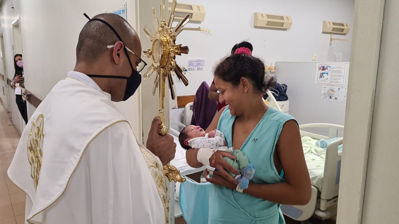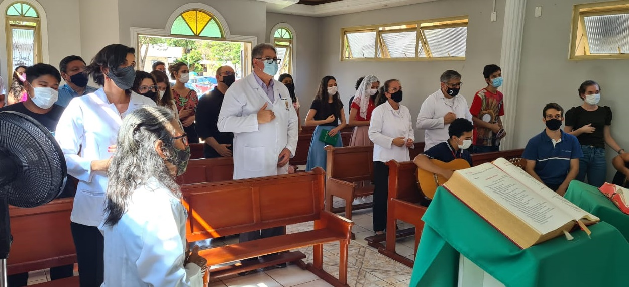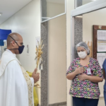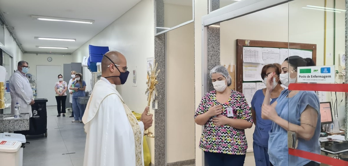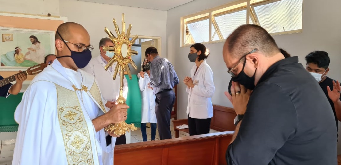 Após a celebração, o padre visitou as dependências do hospital com o Santíssimo Sacramento. Todos os presentes puderam receber a benção e fazer uma breve adoração.