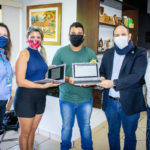 Nesta sexta-feira, 20, o reitor Marcelo Turine e a vice-reitora Camila Ítavo entregaram os primeiros chromebooks adquiridos pela UFMS para