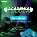 Estão abertas inscrições para prática de musculação na Academia Escola UFMS. As vagas estão disponíveis para estudantes de graduação, pós-graduação,