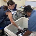 Pela primeira vez na UFMS, um peixe da espécie cachara (Pseudoplatystoma fasciatum) passou por um exame de tomografia computadorizada. O