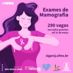 Estudantes, servidoras e colaboradoras terceirizadas da UFMS já podem participar do cadastro para realização de exame de mamografia gratuito. É