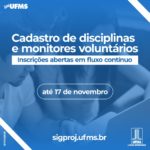 Estão abertas as inscrições para o cadastro de disciplinas e de estudantes no Programa Institucional de Monitoria Voluntária. A submissão