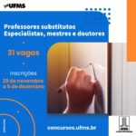 Especialistas, mestres e doutores podem participar do processo seletivo para professor substituto na UFMS. São 31 vagas disponíveis na Cidade