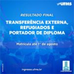 O resultado da seleção para transferência externa, refugiados e portadores de diploma da UFMS já pode ser acessado no Portal
