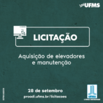 A UFMS realiza no dia 28 de setembro um novo processo licitatório para a aquisição de elevadores de passageiros. Além