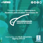 As inscrições para assistente à docência nos polos da Universidade Aberta do Brasil (UAB) associados à UFMS, nos municípios de