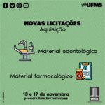 Ainda em novembro, a UFMS abre processos licitatório para registro de preços de materiais de consumo odontológico e farmacológico. “O