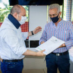 Nesta quarta-feira, 4, o reitor Marcelo Turine e a vice-reitora Camila Ítavo receberam o professor Eronides de Jesus Bíscola. O