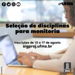 Professores de todas as unidades da UFMS podem inscrever disciplinas para obterem monitores bolsistas e voluntários. Para o segundo semestre