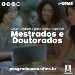 A cada semestre os programas de Pós-graduação da UFMS selecionam interessados em cursarem disciplinas isoladas como aluno especial. Atualmente, seis