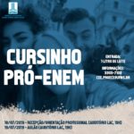Nesta quinta-feira (18), começam as atividades do segundo semestre do Cursinho Pró-Enem. Para recepcionar os alunos, às 19 horas, no