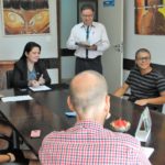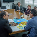 O reitor Marcelo Turine, a vice-reitora Camila Ítavo e uma equipe de docentes e técnicos administrativos da UFMS se reuniram