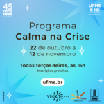 Estão abertas as inscrições para estudantes de graduação da UFMS participarem do Programa Calma na Crise. Serão realizados encontros gratuitos