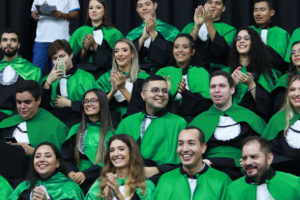Nesta terça-feira, 12, foi realizada a segunda noite de colações de grau da Cidade Universitária. A celebração reuniu 320 estudantes das Faculdades de Odontologia (Faodo), de Direito (Fadir), de Ciências Farmacêuticas, Alimentos e Nutrição (Facfan), de Medicina (Famed), de Medicina Veterinária e Zootecnia (Famez) e dos Institutos Integrado de Saúde (Inisa) e de Biociências (Inbio). A solenidade ocorreu no Ginásio Moreninho, com transmissão ao vivo pelo canal da TV UFMS.