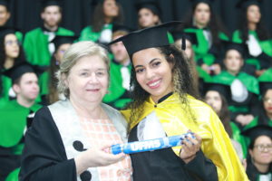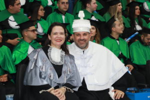 A bacharel em Zootecnia, Gabriella Hippy da Rocha, discursou em nome de todos os formandos. “É um grande momento extraordinário em nossas vidas celebrar essa noite com todos. A partir de agora somos mais capazes de resistir a todos obstáculos. Agora vamos enfrentar o próximo capítulo de nossas vidas, pois cada um tem uma história e hoje não é um ponto final, e sim um ponto de partida de muitas conquistas que virão pela frente”.