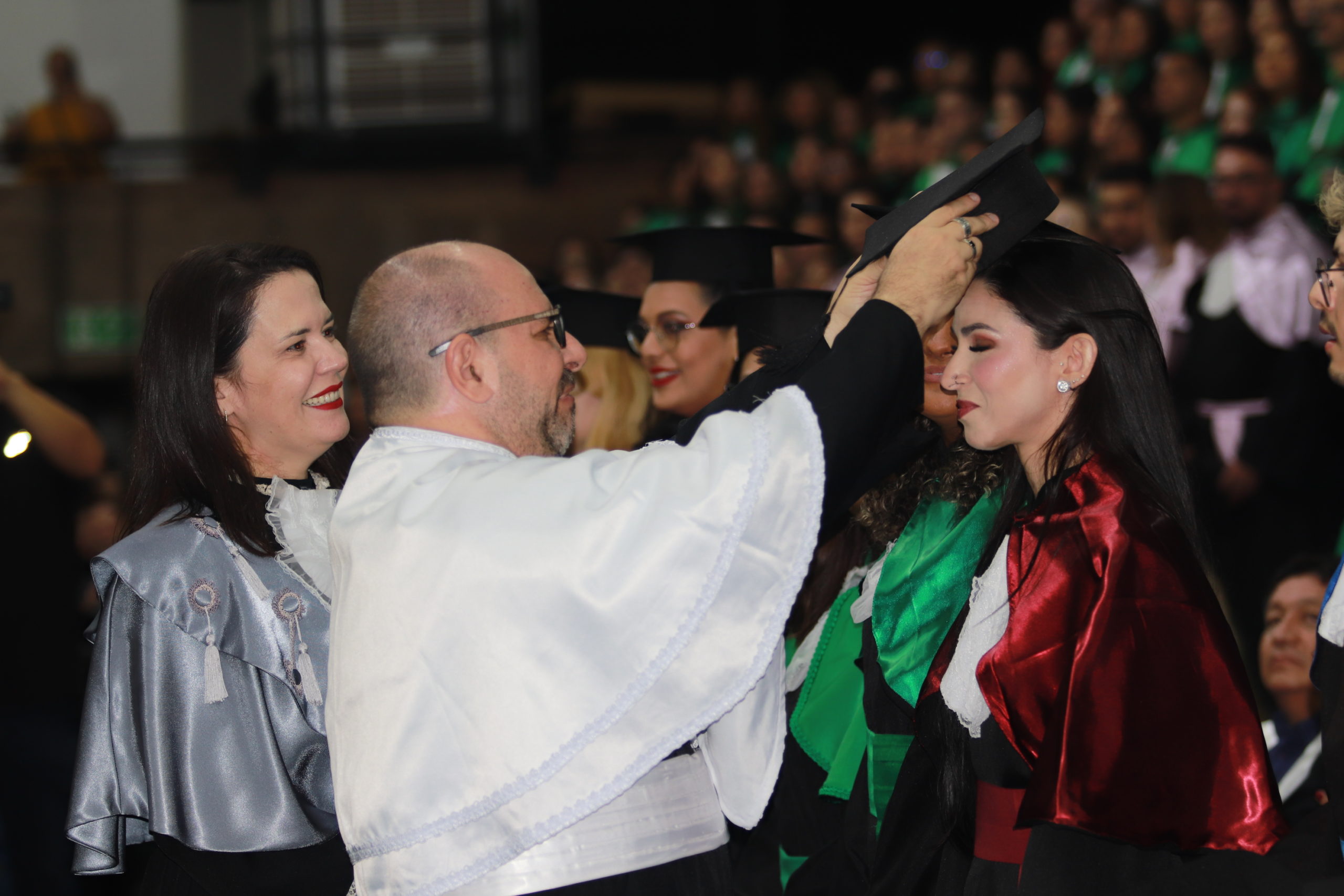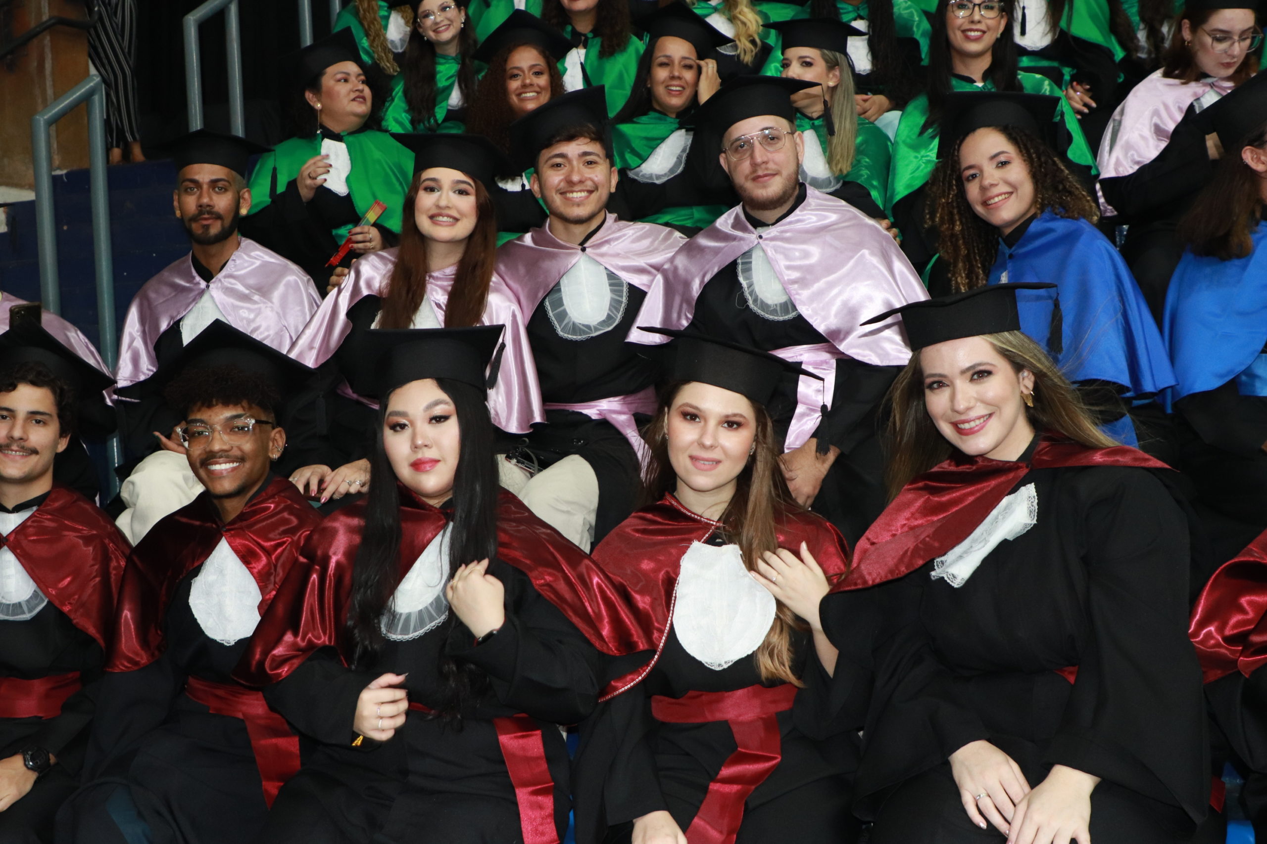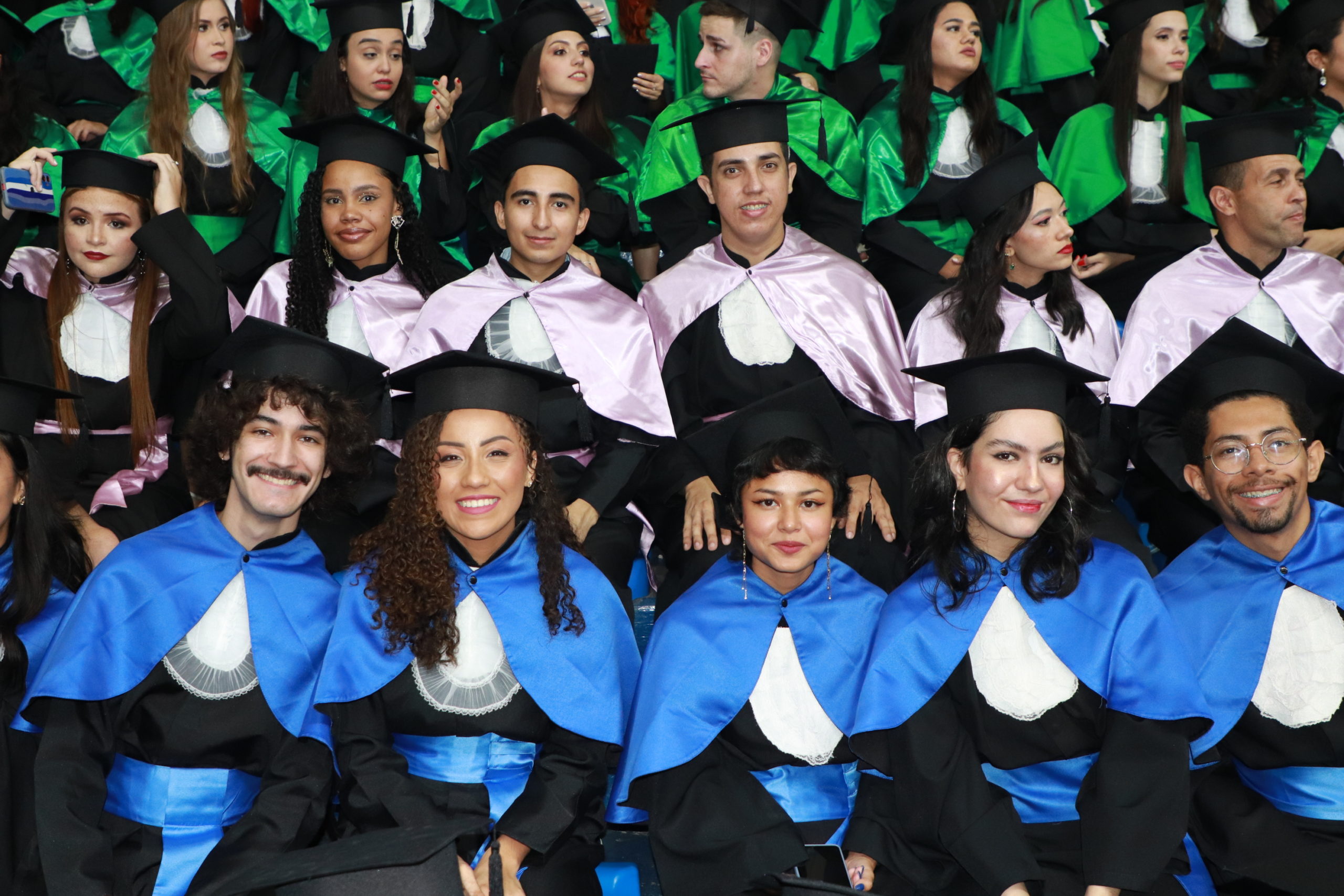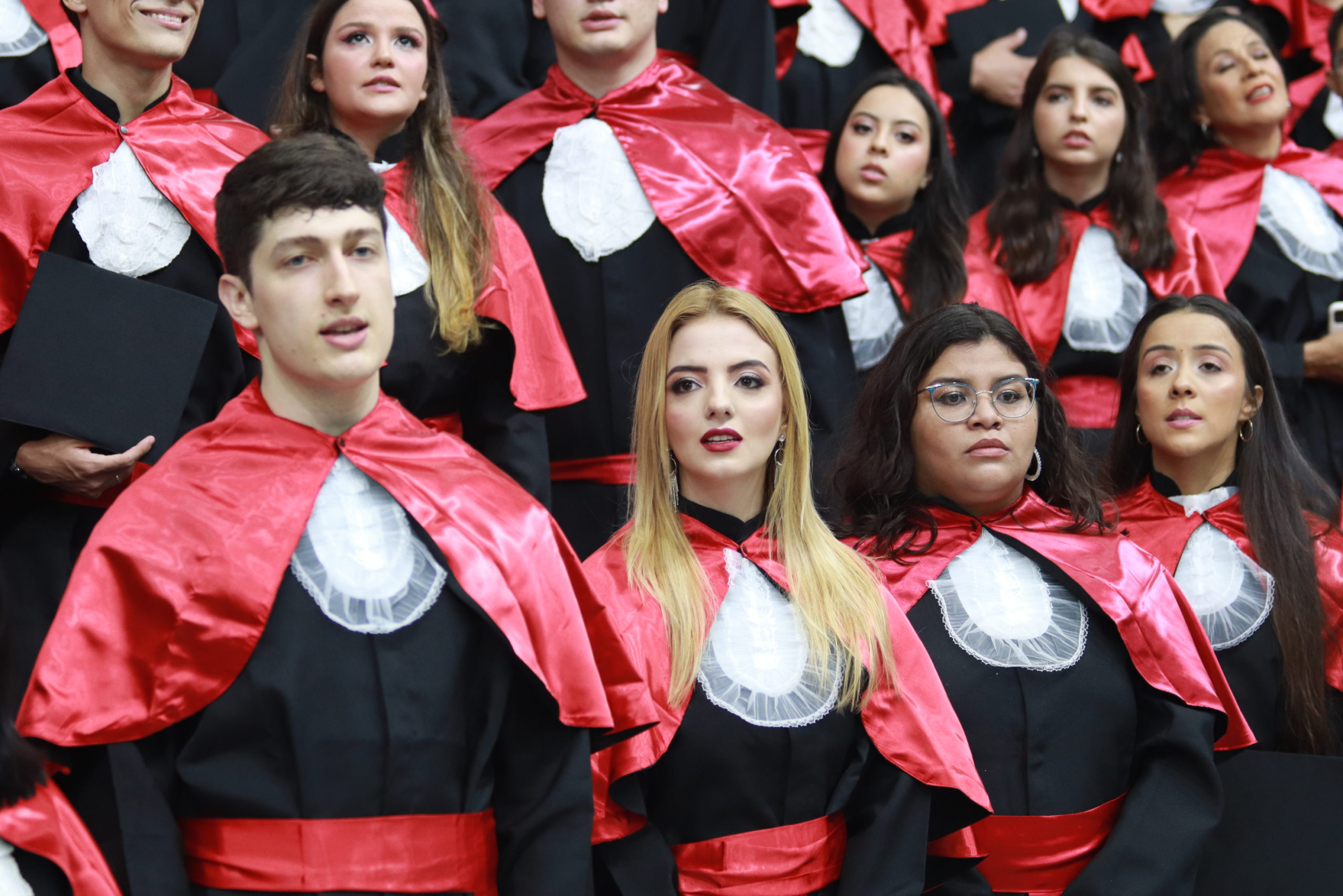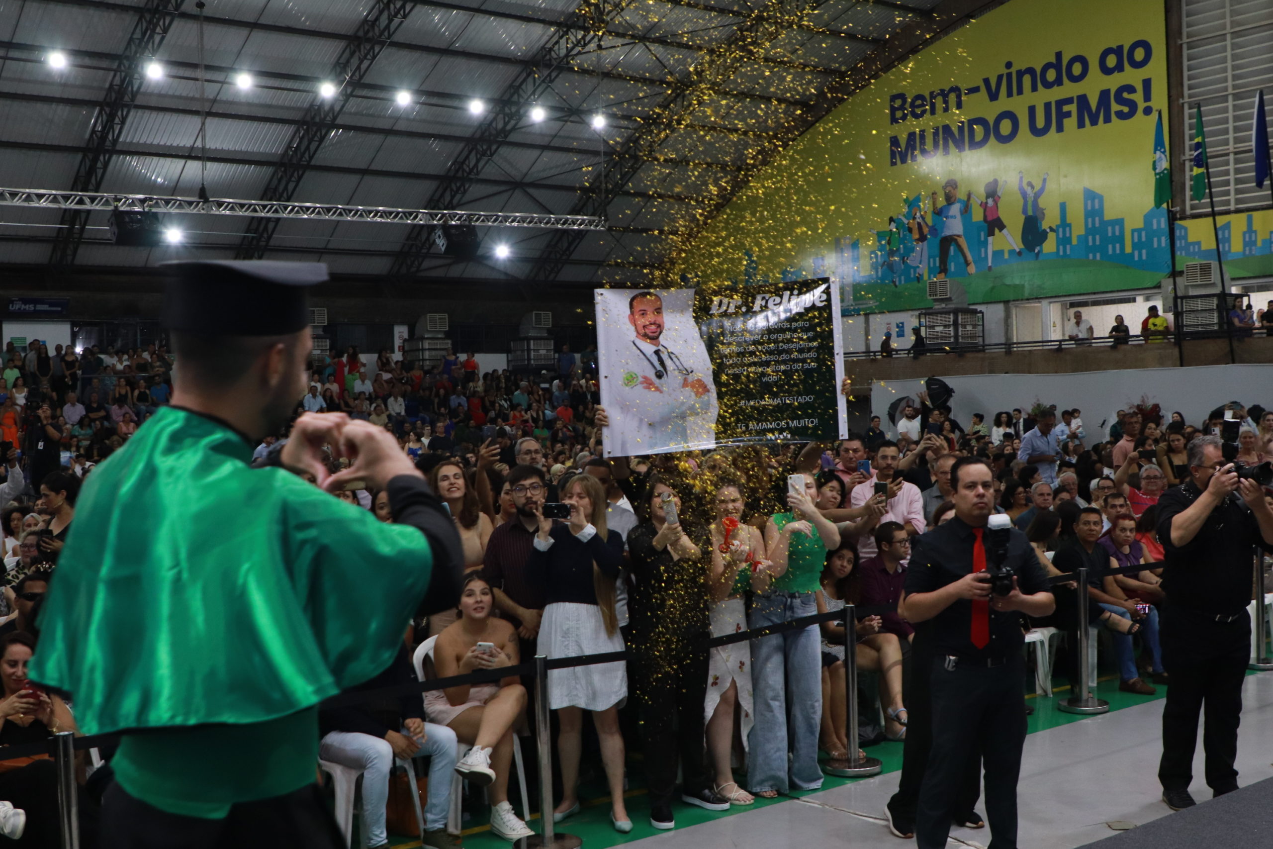 Nesta terça-feira, 12, foi realizada a segunda noite de colações de grau da Cidade Universitária. A celebração reuniu 320 estudantes das Faculdades de Odontologia (Faodo), de Direito (Fadir), de Ciências Farmacêuticas, Alimentos e Nutrição (Facfan), de Medicina (Famed), de Medicina Veterinária e Zootecnia (Famez) e dos Institutos Integrado de Saúde (Inisa) e de Biociências (Inbio). A solenidade ocorreu no Ginásio Moreninho, com transmissão ao vivo pelo canal da TV UFMS.