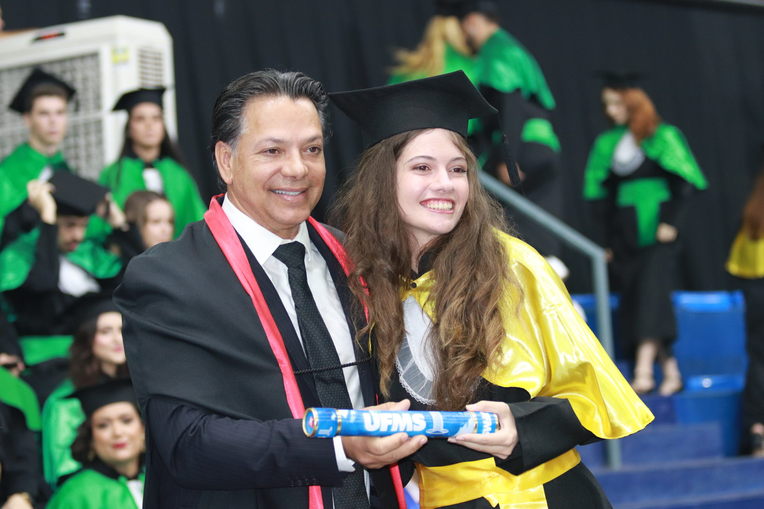O reitor Marcelo Turine parabenizou todos os formandos e celebrou a conquista. “É um orgulho muito grande receber vocês na Universidade e entregá-los para a sociedade sul-mato-grossense, para o Brasil e para o mundo. Que abençoe vocês nessa profissão que escolheram, sejam felizes e que a felicidade na profissão traga felicidade também para a família e amigos. A Universidade está sempre a disposição em busca de conhecimento, pois sem conhecimento e sem ciência não existe desenvolvimento de uma cidade e de um país inteiro”, destacou.