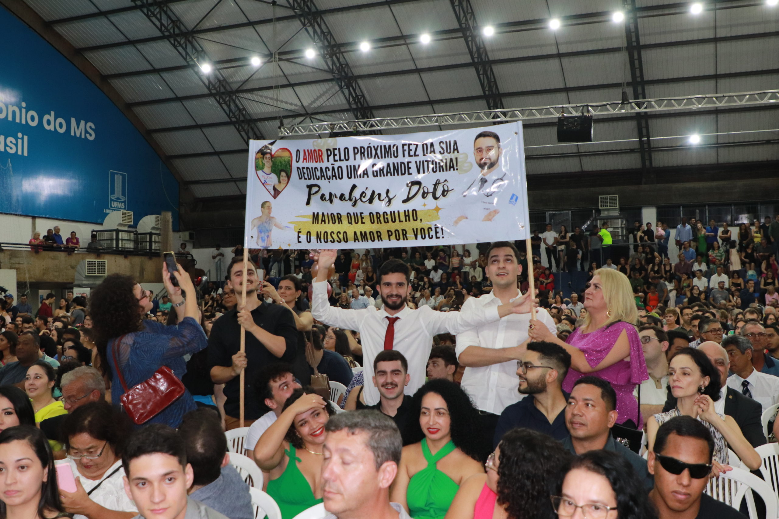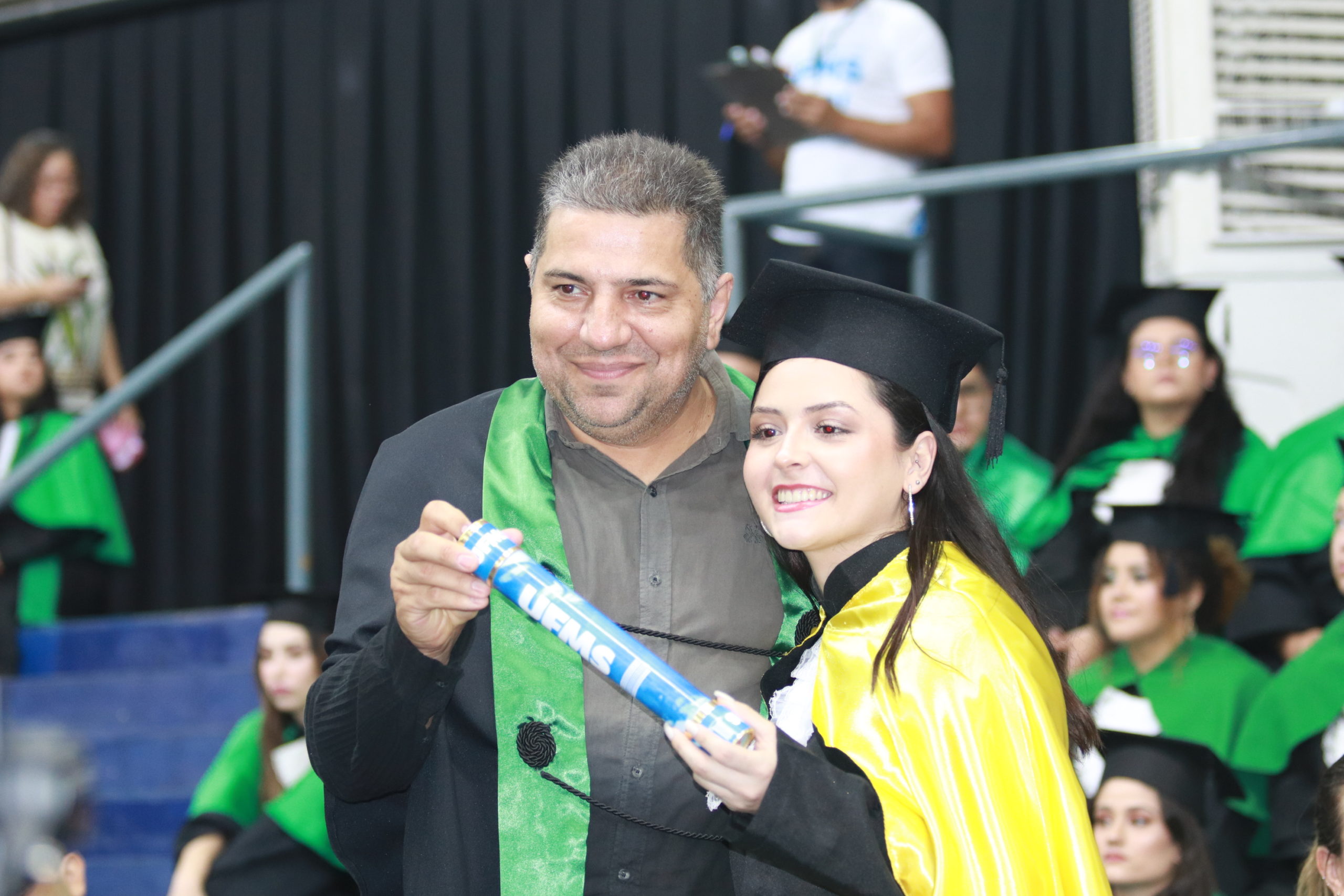 O diretor da Faodo, Fábio Nakao Arashiro, agradeceu a confiança que os formandos tiveram durante o curso. “Em nome da coordenação, eu agradeço a confiança que vocês tiveram em nós. Passamos por muitos desafios, um deles foi a pandemia da Covid-19 e vencemos. Hoje estamos aqui celebrando essa conquista junto com vocês. A missão da UFMS é formar profissionais e transformar a sociedade”, disse.