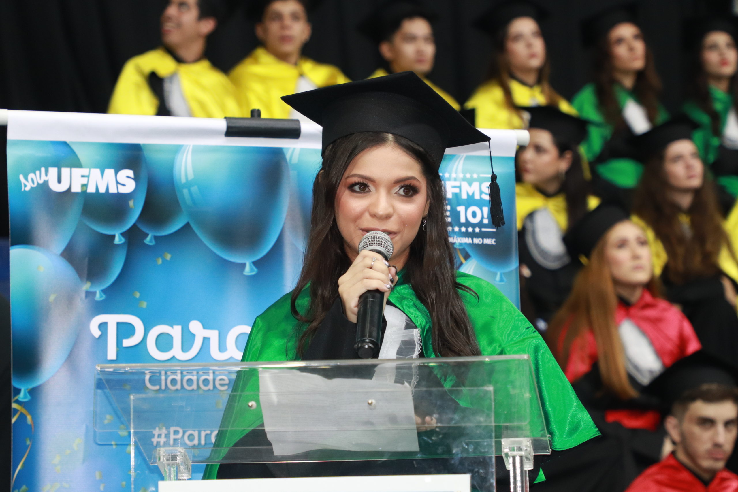A vice -reitora Camila Ítavo parabenizou os concluintes e enfatizou a importância de celebrar e agradecer. “Façam a diferença onde vocês atuarem e relembrem: uma vez UFMS, para sempre UFMS. Sejam felizes e brilhem muito, sucesso!”, exaltou.
