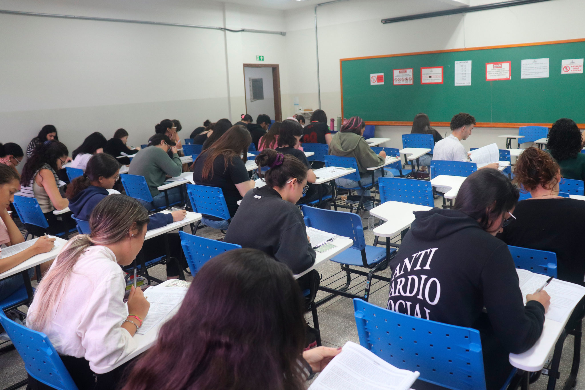 O exame é composto por 60 questões de múltipla escolha e, neste ano, a redação teve como tema Ações individuais no combate às mudanças climáticas: obrigação moral ou solução ineficiente. “Achei fácil de desenvolver, esperei bastante um tema de meio ambiente por causa das enchentes deste ano no Rio Grande do Sul. Então eu estudei e estava preparada para escrever sobre esse tema”, conta a candidata Bhianca Barbosa.