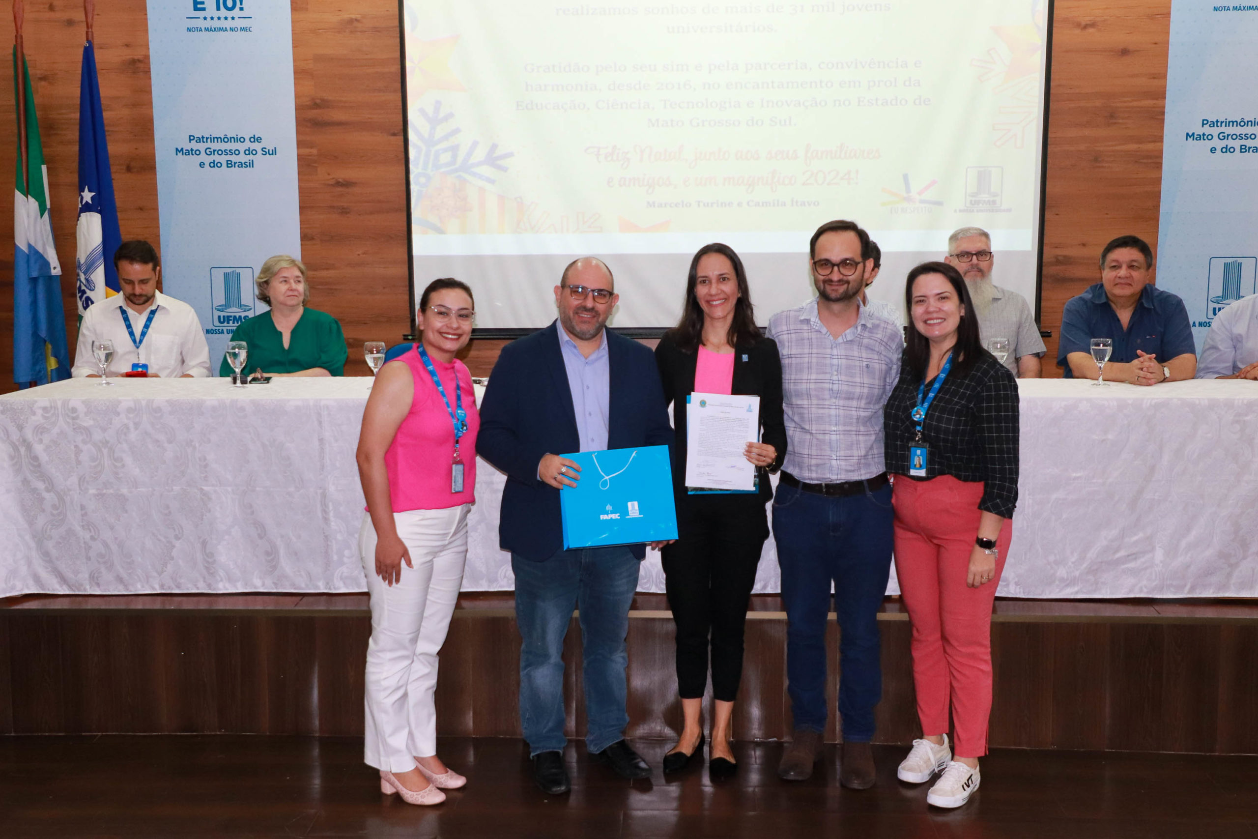 A vice-reitora Camila Ítavo citou o hino da Universidade para destacar que a UFMS é o sonho realizado de muitas pessoas que trabalharam para sua concretização. Lembrou que a Instituição já nasceu multicampi e que ser servidor público é um chamado. “Conheçam a história da nossa Universidade, porque nós amamos aquilo que conhecemos. Quando olhamos para nossa história vemos que nosso DNA é levar o ensino de graduação, de pós-graduação, a pesquisa e a extensão para todos os municípios do estado. Temos trabalhado muito e hoje levamos tudo isso para todo o país e também para várias partes do mundo. Temos uma grande responsabilidade porque fomos chamados e ouvimos esse chamado a contribuir para uma missão maravilhosa, que é a formação de jovens”, falou.