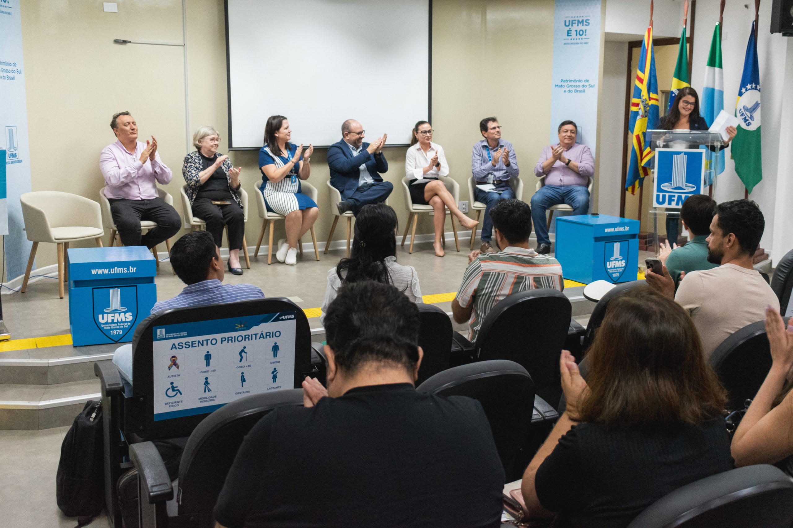 “A gente tem que entrar [na Universidade] com o coração aberto. […] Nós estamos aqui para engrandecer a Universidade e a gente faz disso a nossa missão. Que a gente leve isso de uma forma tranquila, leve, que a gente torça uns pelos outros, que a gente torça pela UFMS. […] A gente precisa melhorar a nossa Universidade a cada dia. Ela é uma obra-prima que nunca estará acabada, estará sempre em desenvolvimento e em processo de engrandecimento”, reforçou a vice-reitora Camila Celeste Brandão Ferreira Ítavo.