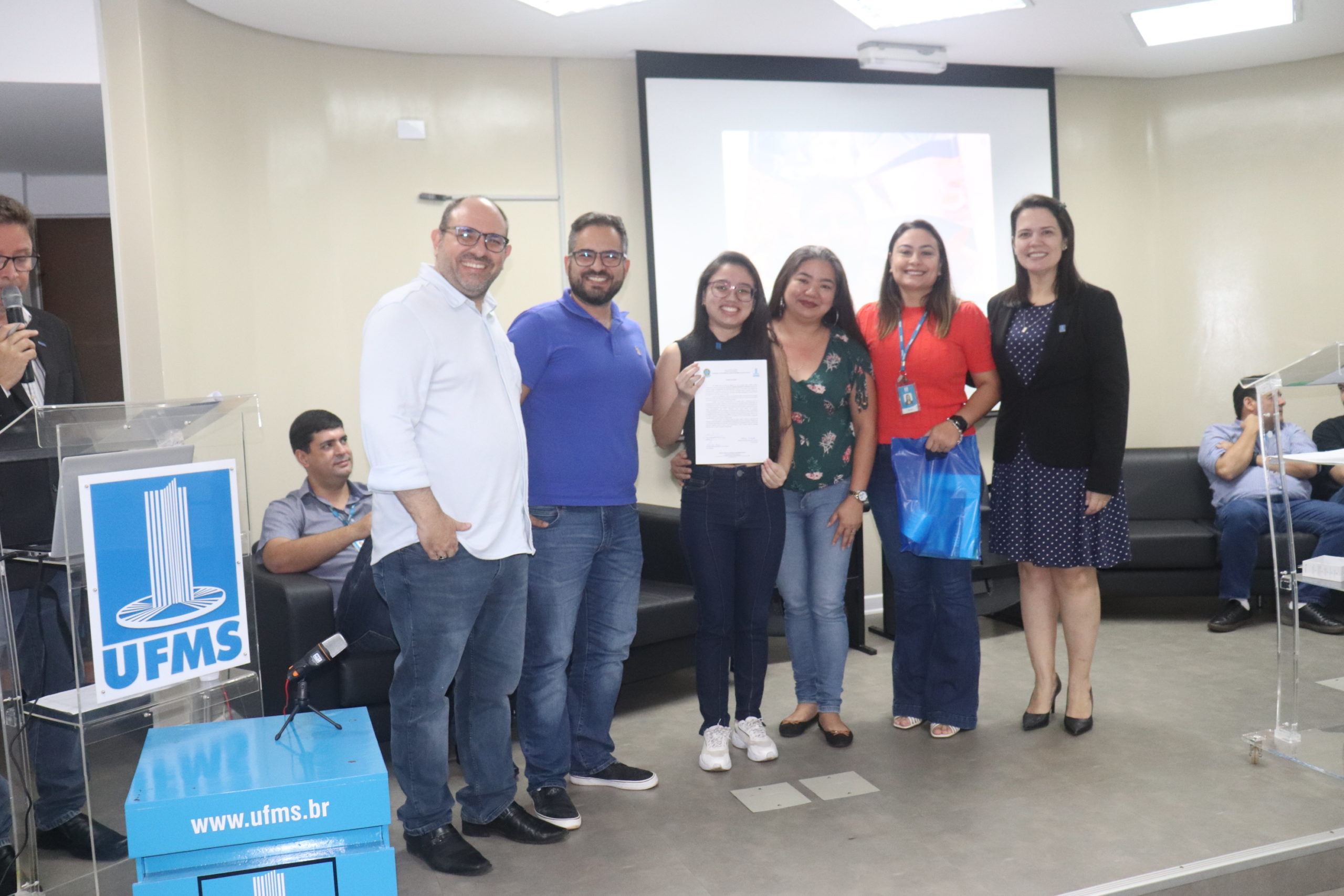 Andressa Silva Rodrigues tomou posse no cargo de técnico de laboratório/biologia e vai atuar no CPCS. Ela falou em nome de todos os novos servidores. “Finalmente chegou o dia tão esperado. Somos desconhecidos uns dos outros, mas temos um sonho comum: sermos servidores públicos. Essa conquista é fruto do nosso esforço, do nosso trabalho, mas também de pessoas maravilhosas que não nos deixaram desistir. Agradeço a todas elas que estão aqui. Muito obrigada pela parceria, pelo amor, pela empatia. Parabéns a nós pela conquista. Alguns, como eu, até a pouco tempo éramos estudantes na UFMS, hoje somos servidores da maior e melhor instituição pública do Estado”, finalizou.