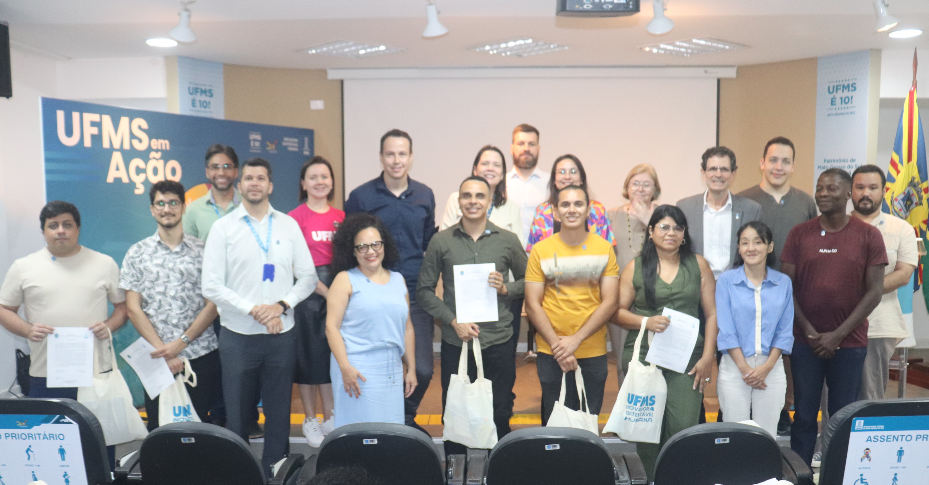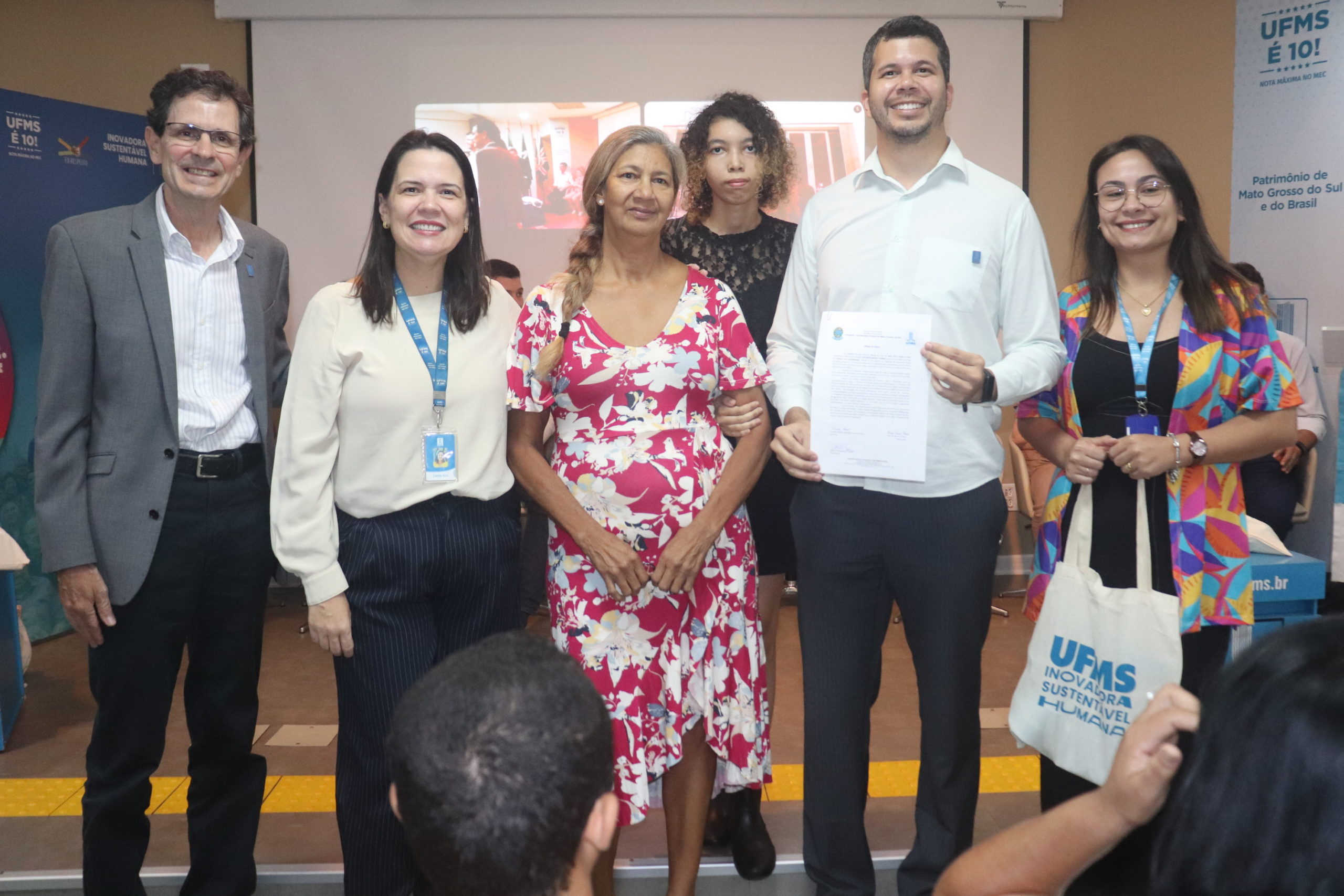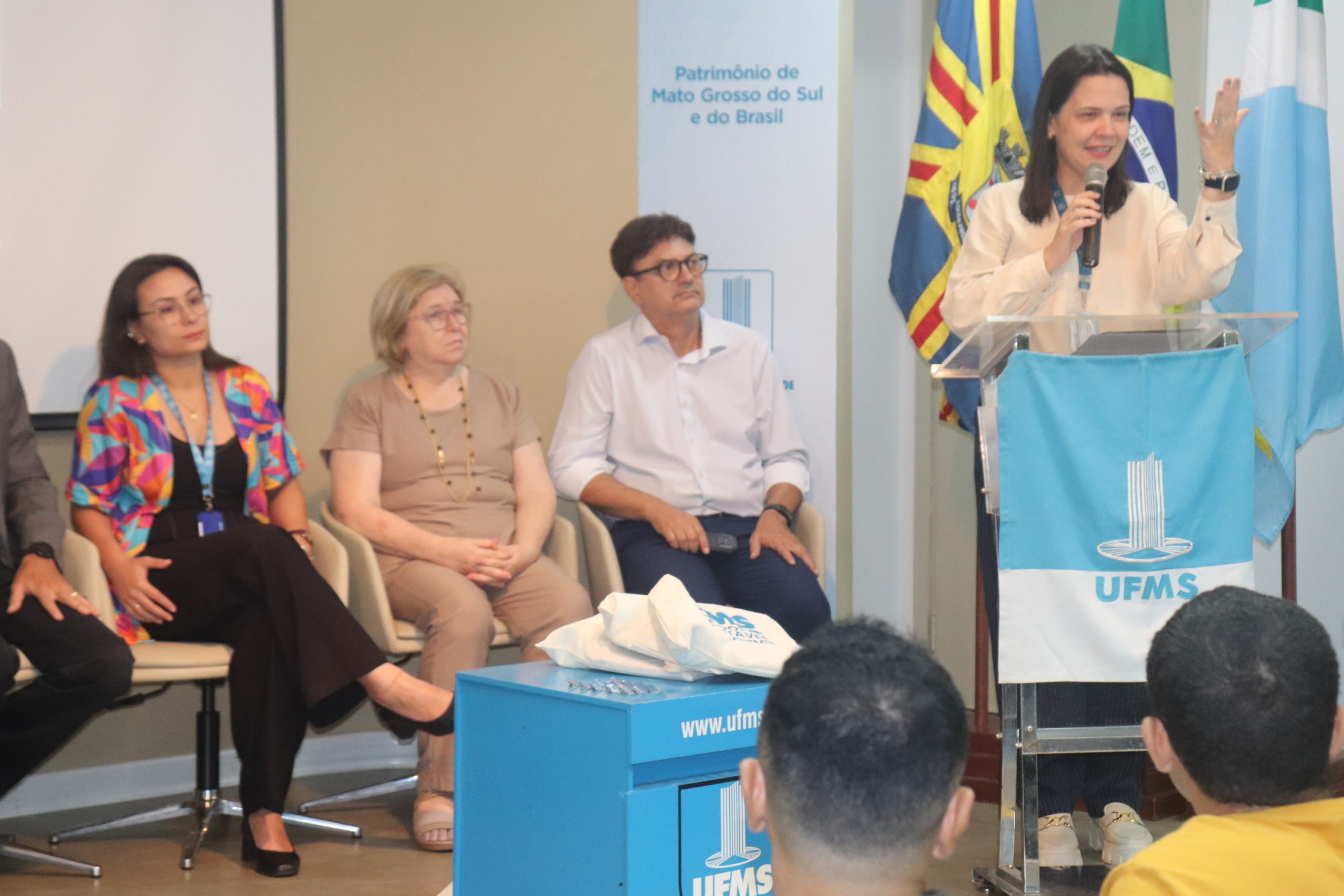 A Universidade Federal de Mato Grosso do Sul deu as boas-vindas a 12 novos servidores em cerimônia realizada na quarta-feira, 4, na Sala de Atos da Reitoria, em Campo Grande. O momento reuniu professores, técnicos-administrativos, gestores, amigos e familiares em um ambiente de acolhimento e integração. A solenidade também contou com participação simultânea da UFMS de Paranaíba, com a presença da diretora Andréia Ribeiro.