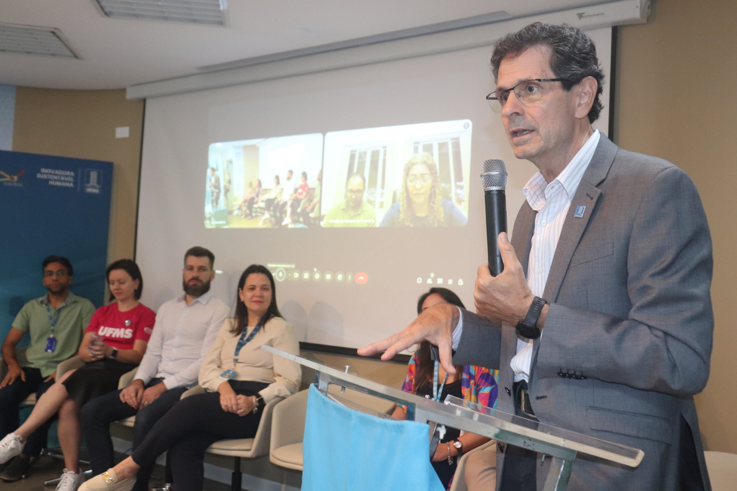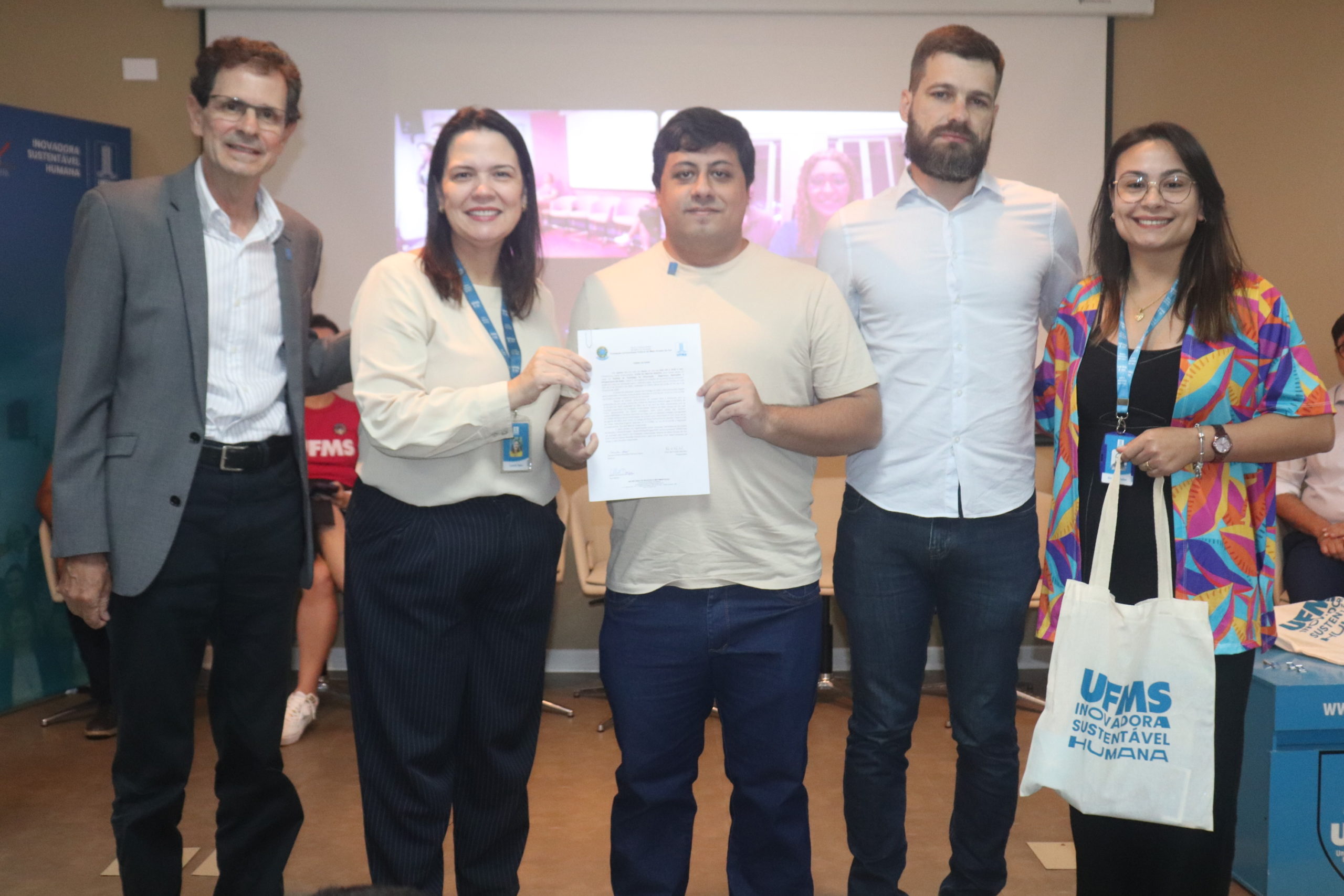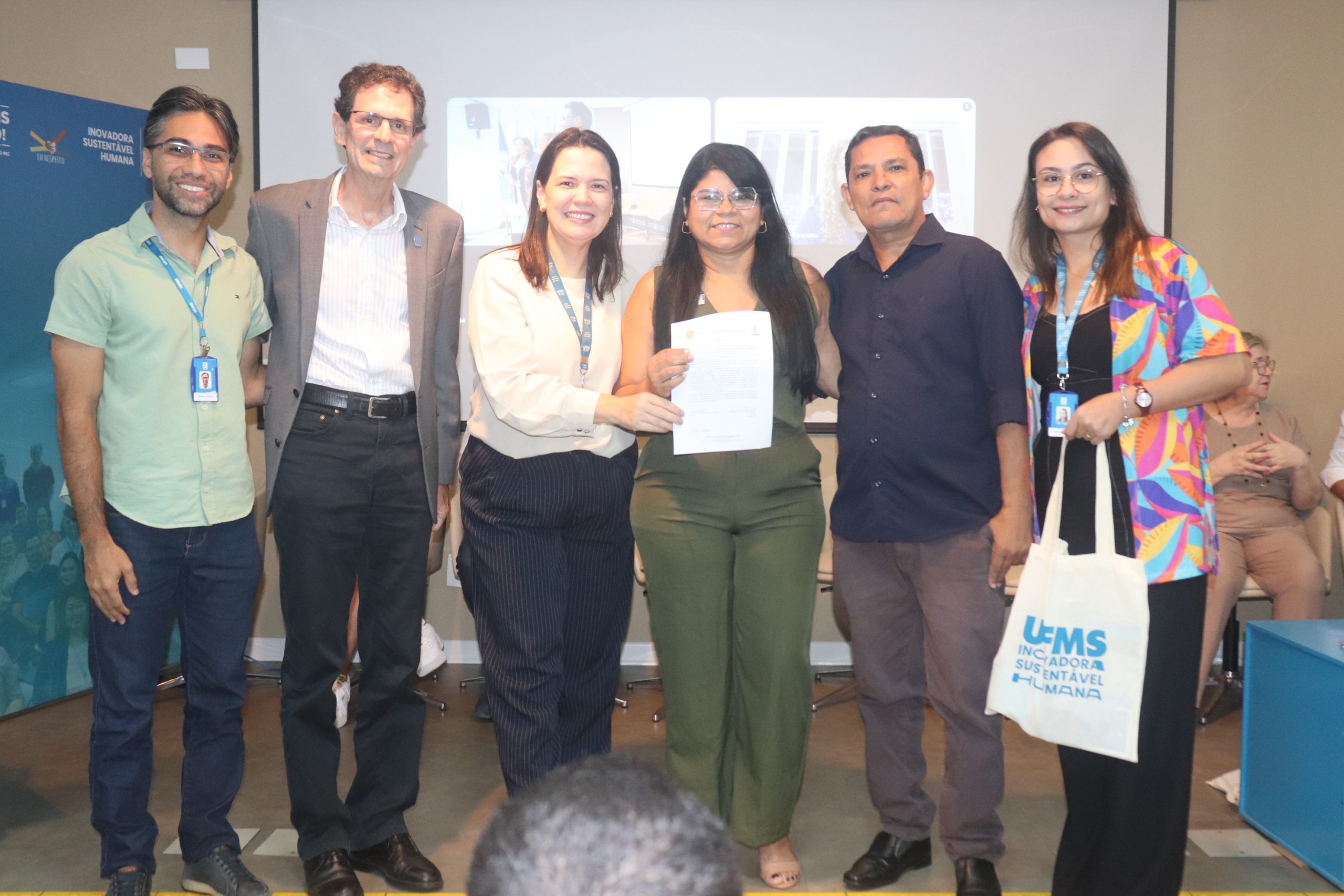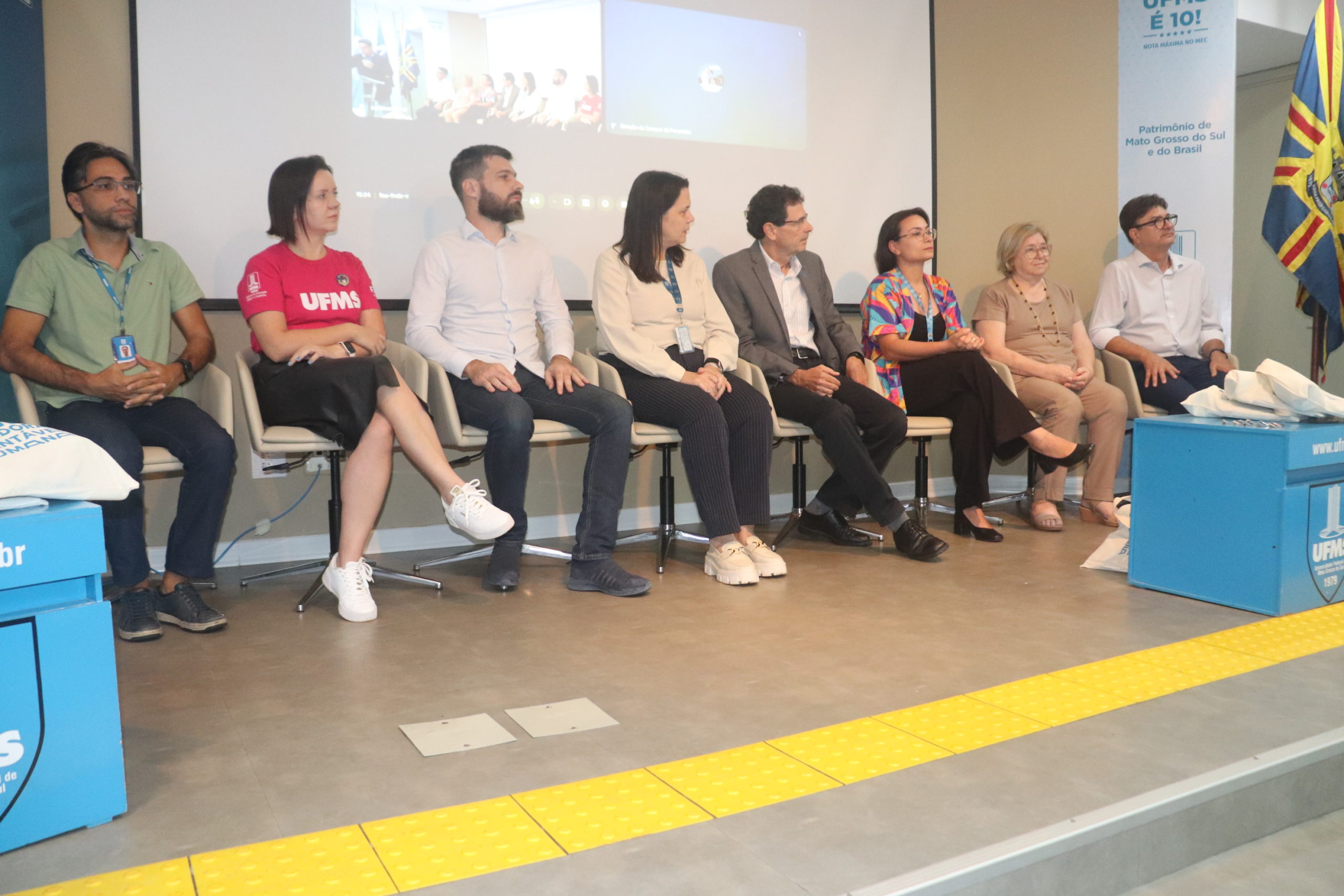 A Universidade Federal de Mato Grosso do Sul deu as boas-vindas a 12 novos servidores em cerimônia realizada na quarta-feira, 4, na Sala de Atos da Reitoria, em Campo Grande. O momento reuniu professores, técnicos-administrativos, gestores, amigos e familiares em um ambiente de acolhimento e integração. A solenidade também contou com participação simultânea da UFMS de Paranaíba, com a presença da diretora Andréia Ribeiro.