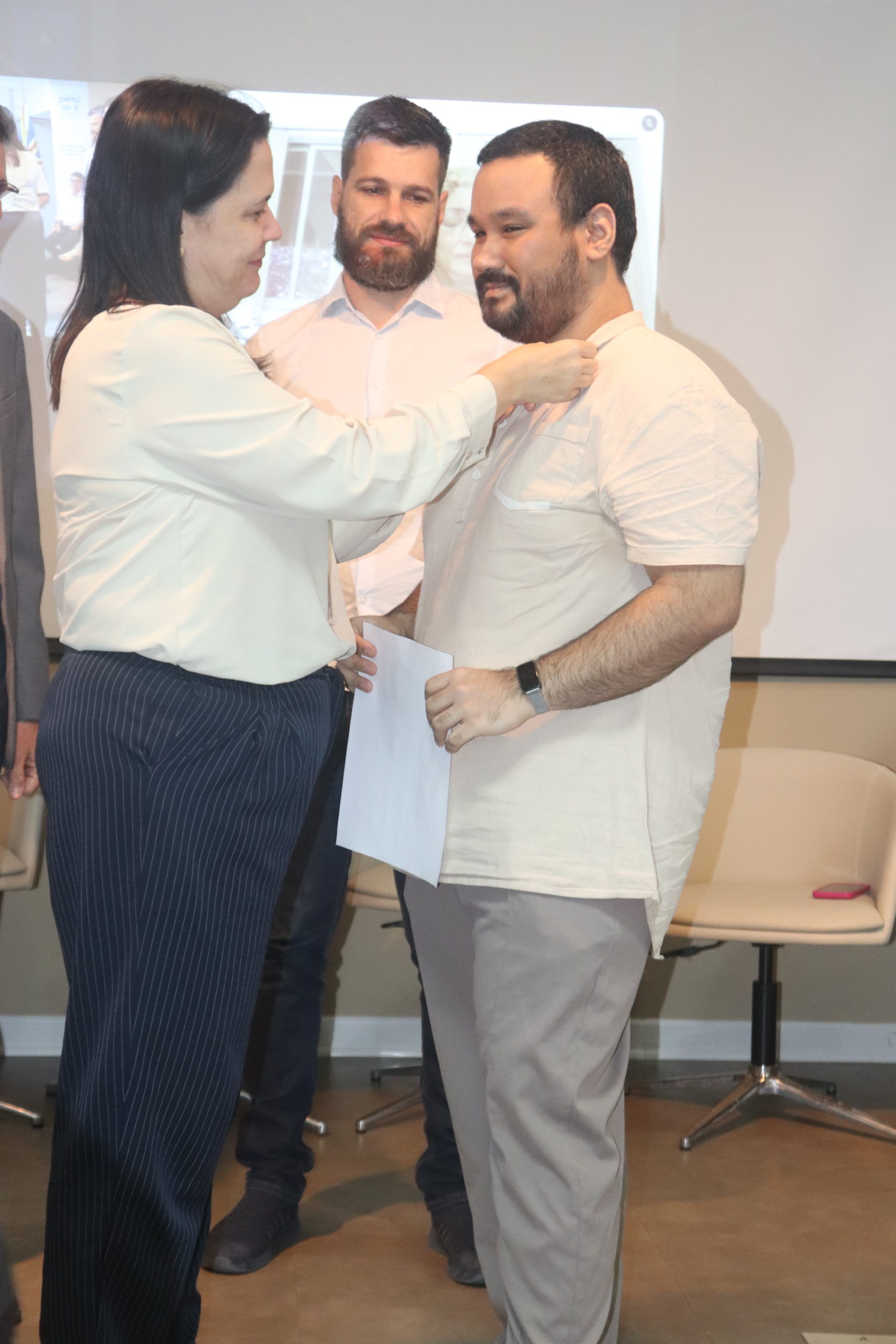 A cerimônia reuniu gestores de diferentes áreas da Universidade, entre eles o diretor do Instituto Integrado de Saúde (Inisa), Nathan Aratani, a diretora da Agência de Educação Digital e a Distância (Agead), Daiane Riedner, o diretor de Infraestrutura Tecnológica, Egon Leon Dadalt, a pró-reitora de Planejamento, Orçamento e Finanças (Proplan), Dulce Maria Tristão, e o diretor da Escola de Administração e Negócios (Esan), Cláudio Cesar da Silva.