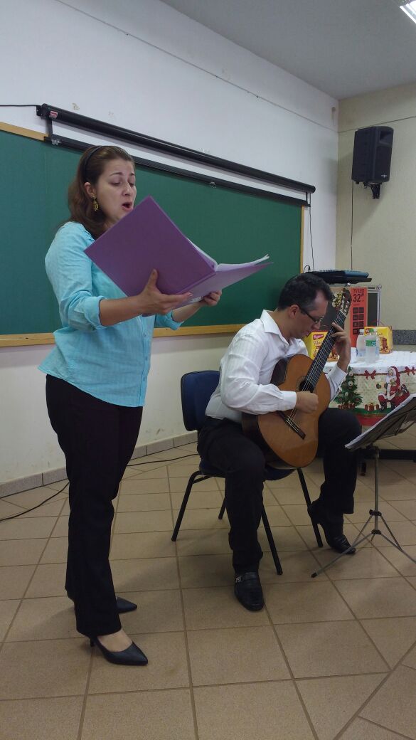 Hoje, 7, o câmpus de Chapadão do Sul (CPCS) recebeu a apresentação de canto e violão com a professora Ana Lúcia Gaborim e o professor Marcelo Fernandes. O projeto faz parte da comemoração natalina da Universidade.