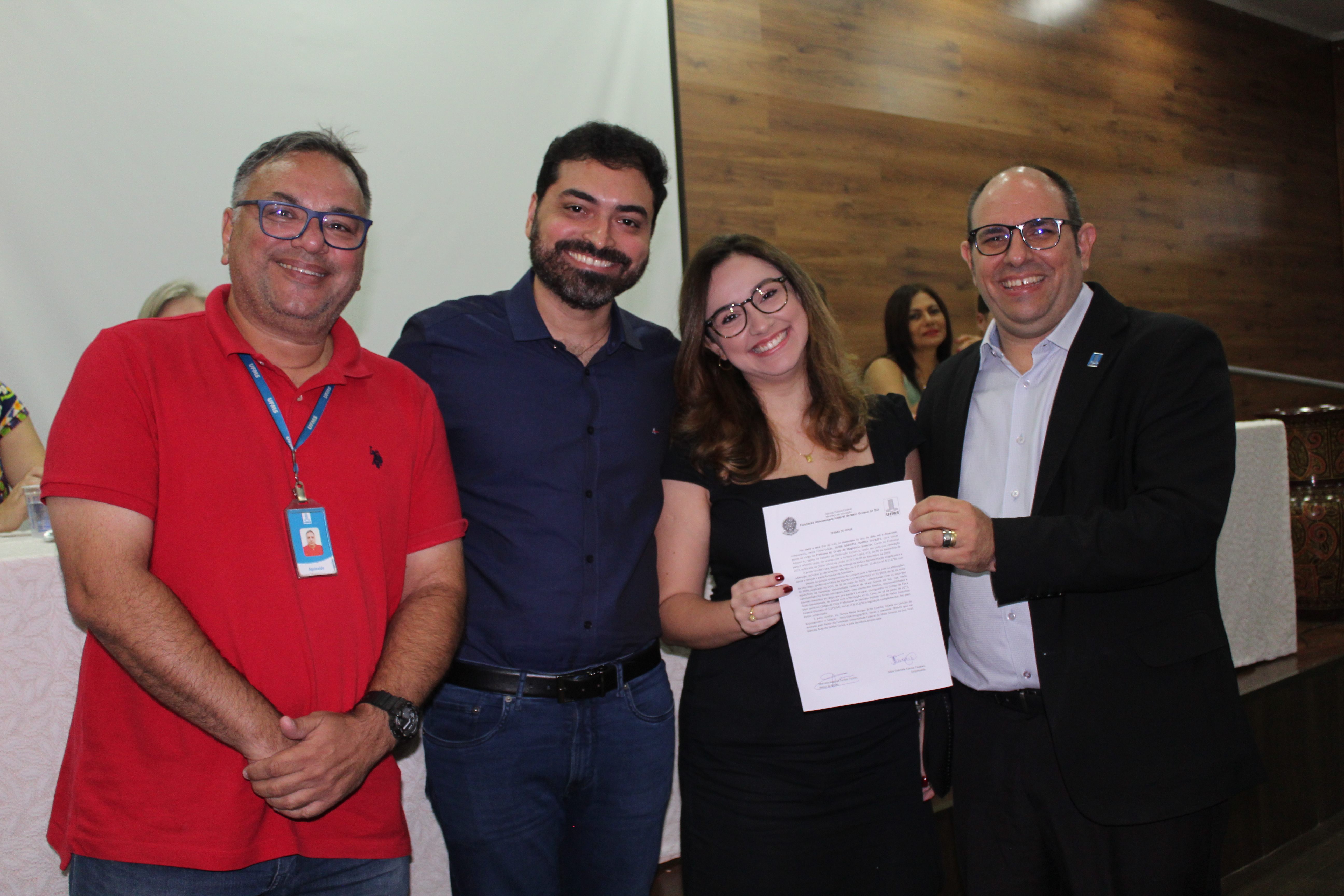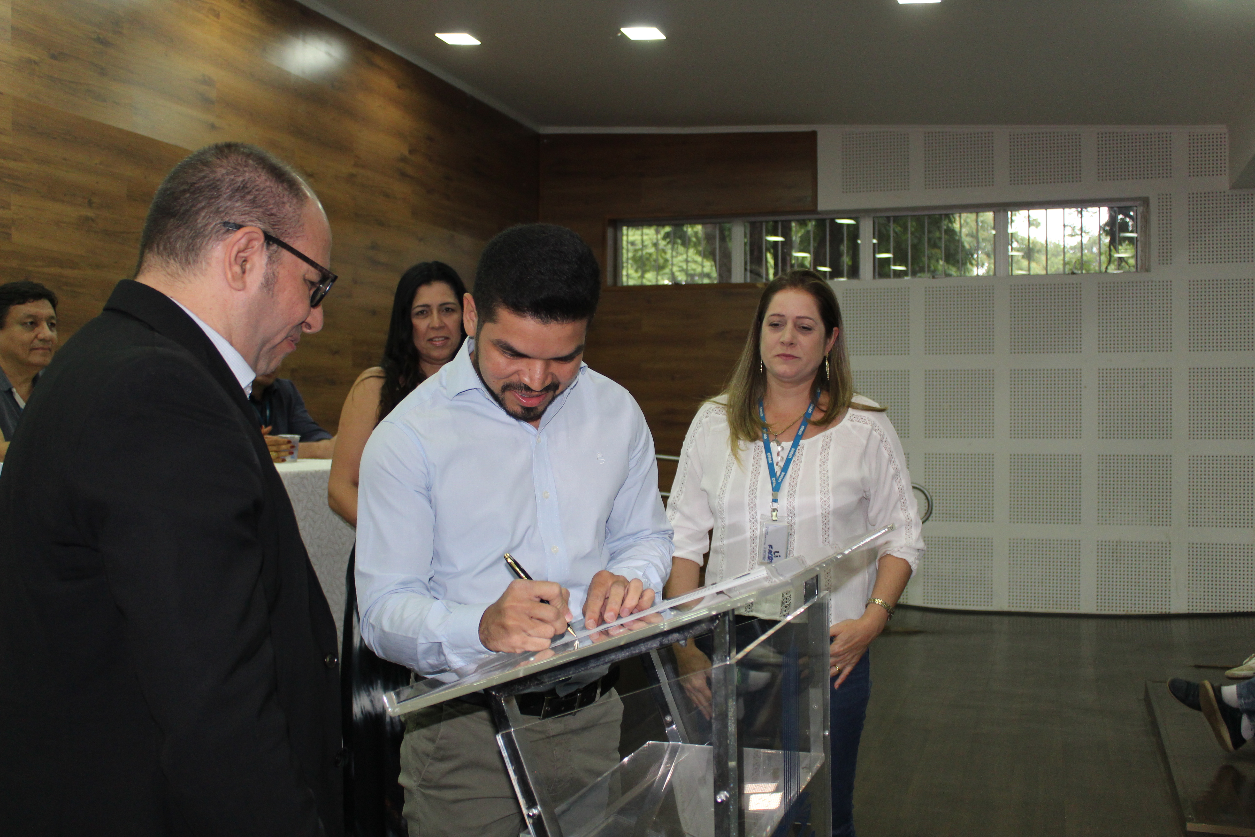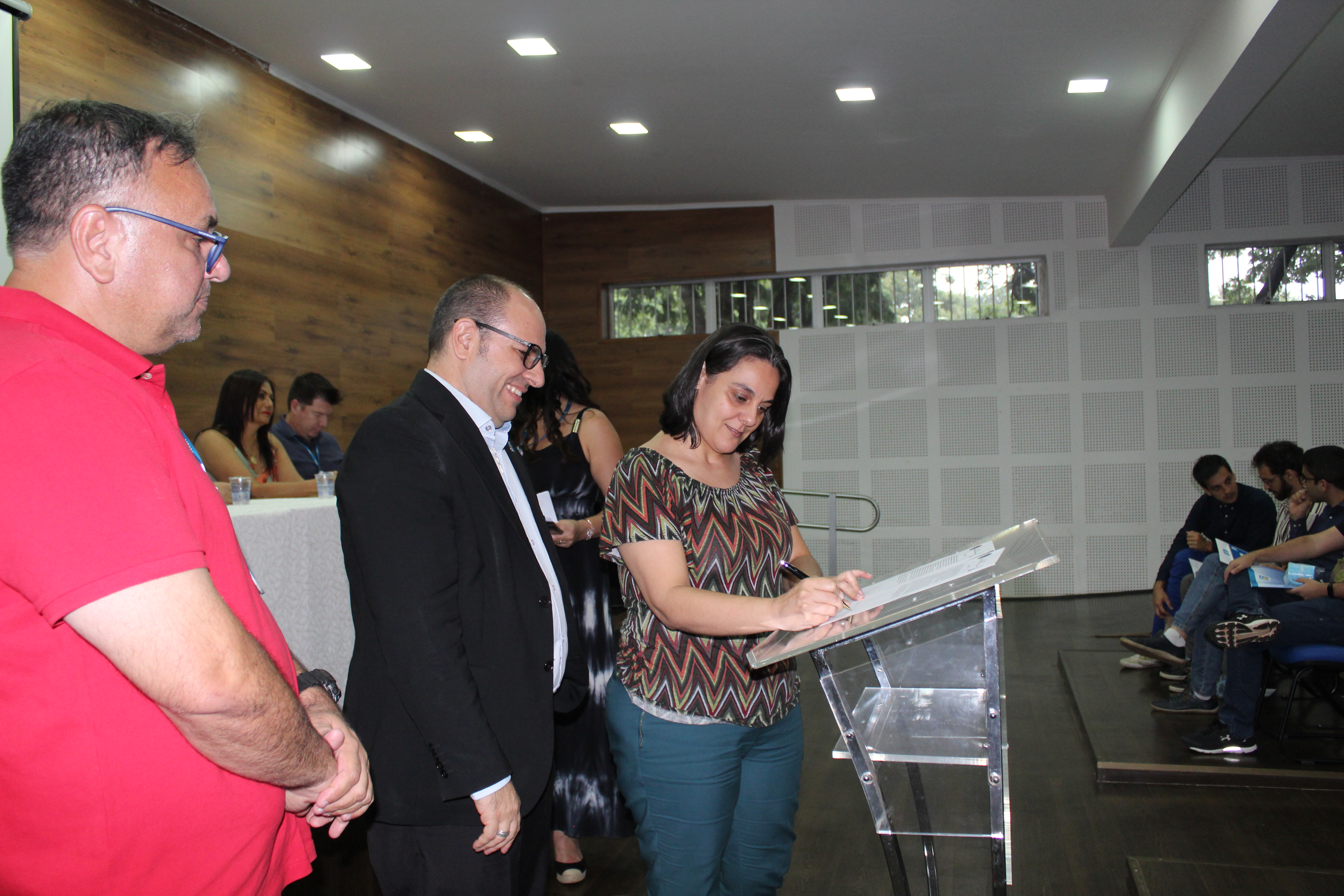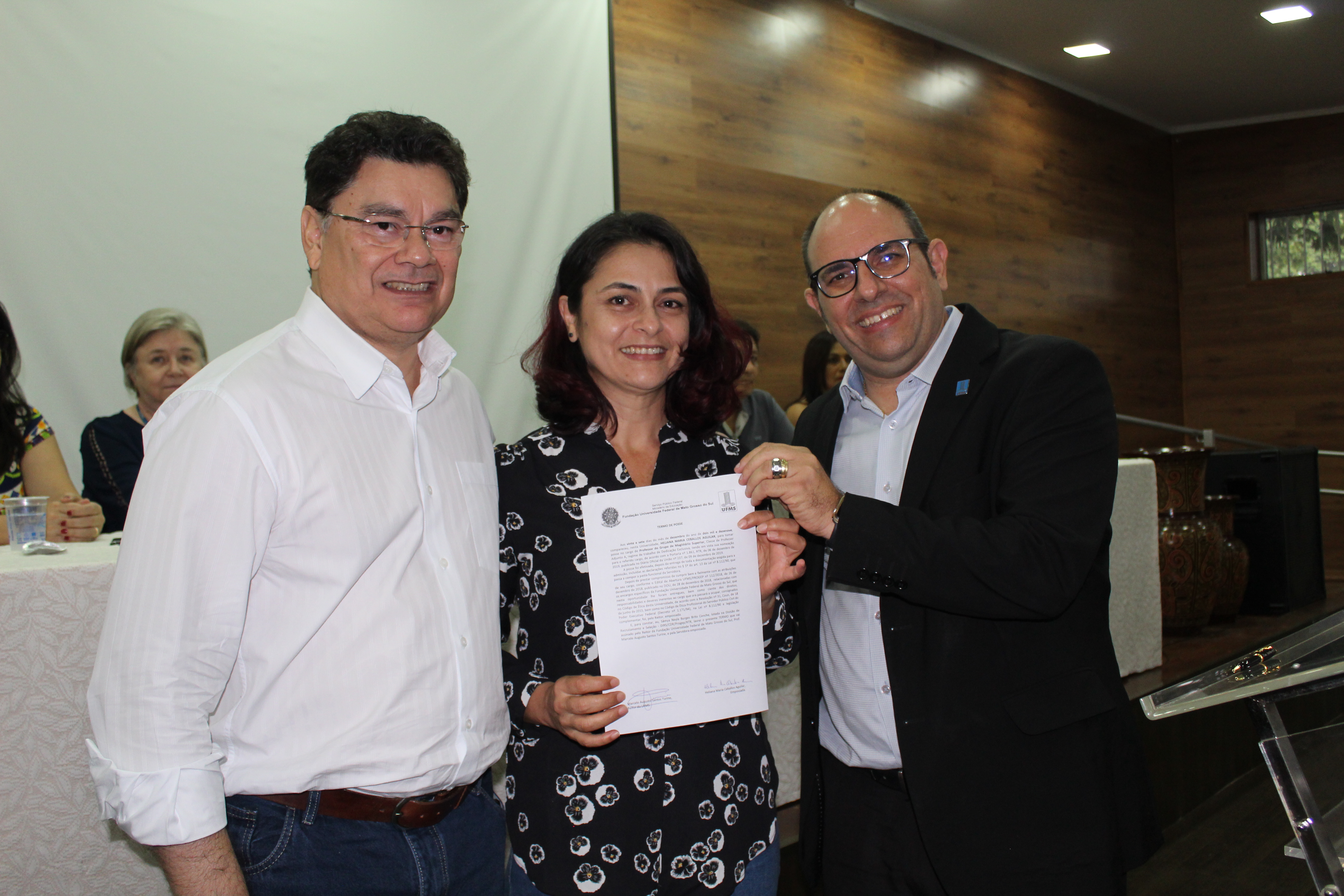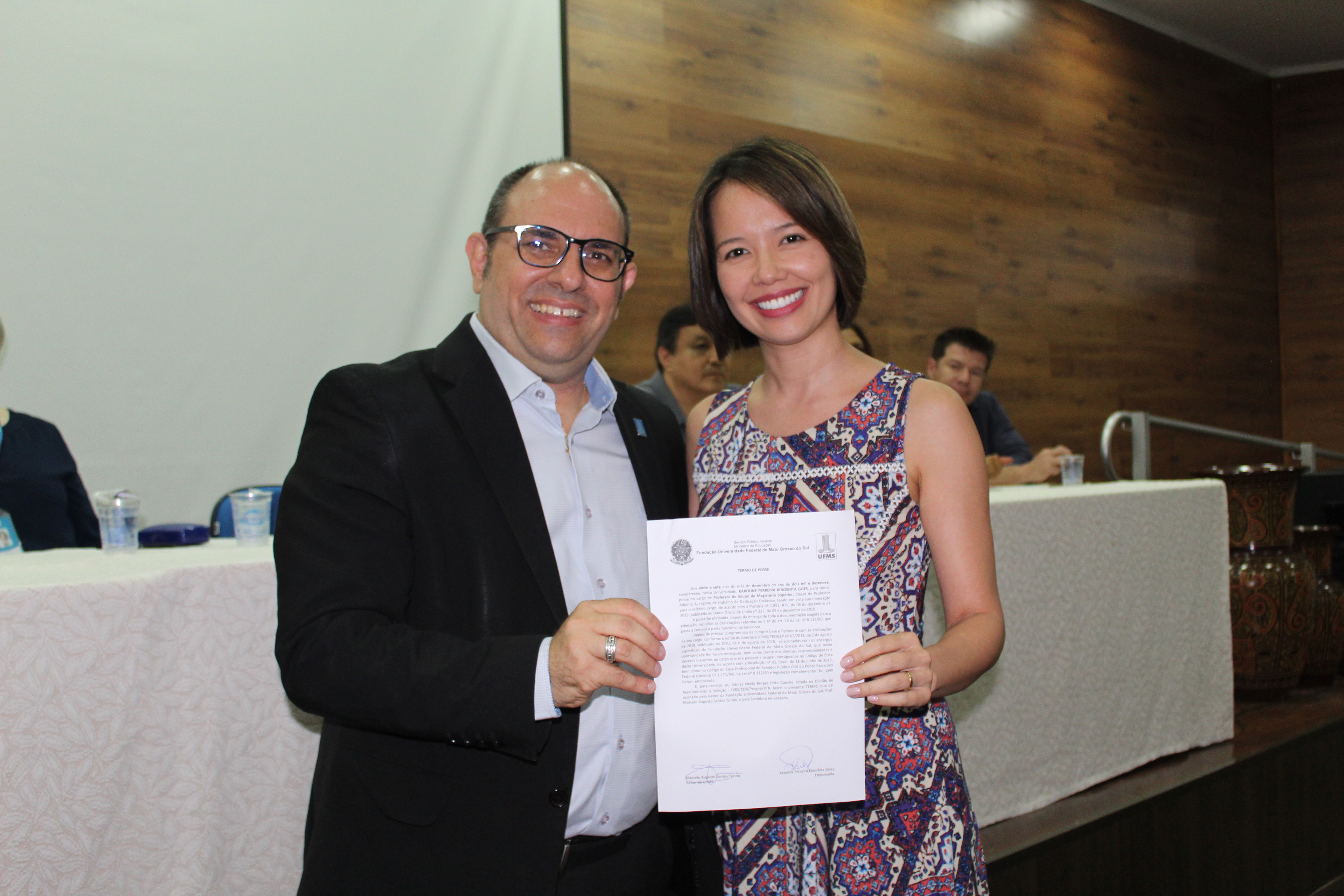 Tomaram posse como técnicos-administrativos Renan Marcel Mugica de Mello, que vai atuar como auxiliar em Administração na Agência de Comunicação Social e Científica e Nataly Luiza Nantes Ojeda, como técnica em Contabilidade na Pró-Reitoria de Planejamento, Orçamento e Finanças (Proplan). “Vocês são fundamentais para manter a Universidade como uma das melhores do mundo e a melhor de Mato Grosso do Sul. Sejam muito bem-vindos”, falou a pró-reitora de Planejamento, Orçamento e Finanças, Dulce Tristão.