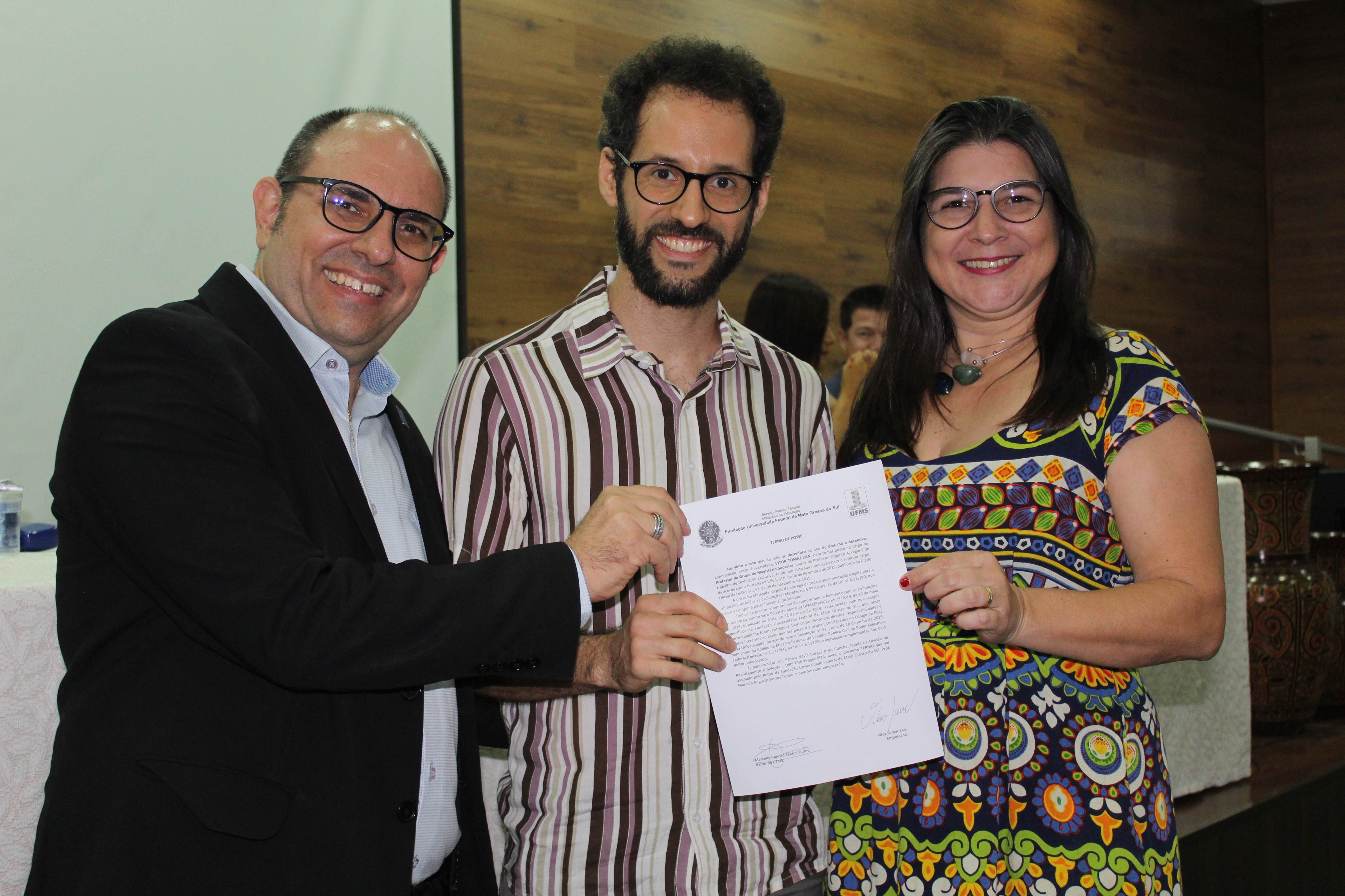 “Os cursos de graduação, principalmente, são o coração da universidade, se não tivermos cursos fortes e consolidados, não conseguiremos transformar estudantes capazes de transformar o meio onde estão inseridos. Esse é o trabalho da Instituição e o de vocês”, destacou o pró-reitor de Graduação em exercício, Cristiano Costa. A Faculdade de Artes, Letras e Comunicação foi contemplada com a nomeação do professor Vitor Tomaz Zan. Ele é mestre e doutor em Estudos Cinematográficos e Audiovisuais pela Universidade Sorbonne Nouvelle, França.