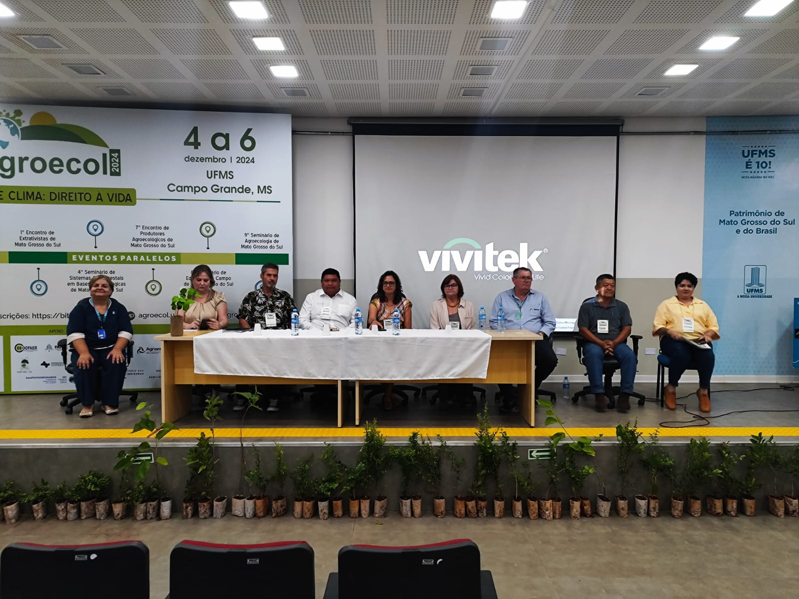 A conferência principal foi conduzida pela professora do Instituto Federal de Brasília e coordenadora da Associação Brasileira de Agroecologia no Centro-Oeste, Vânia Costa Pimentel, que destacou a necessidade de rever o modelo de agronegócio predominante no Estado. “O Agroecol é extremamente importante para um estado como Mato Grosso do Sul, que é historicamente marcado pela predominância do agronegócio. É essencial repensar esse modelo de agricultura que muitas vezes afasta as pessoas do campo e buscar focar em alternativas que valorizem as comunidades locais. Temos aqui experiências incríveis, como as da Cooperativa de Produção e Comercialização da Rede dos Produtores Orgânicos de Mato Grosso do Sul e da Associação de Produtores Orgânicos de Mato Grosso do Sul, além de povos tradicionais que há séculos trabalham com práticas agroecológicas, garantindo alimentos limpos para nossas mesas”.