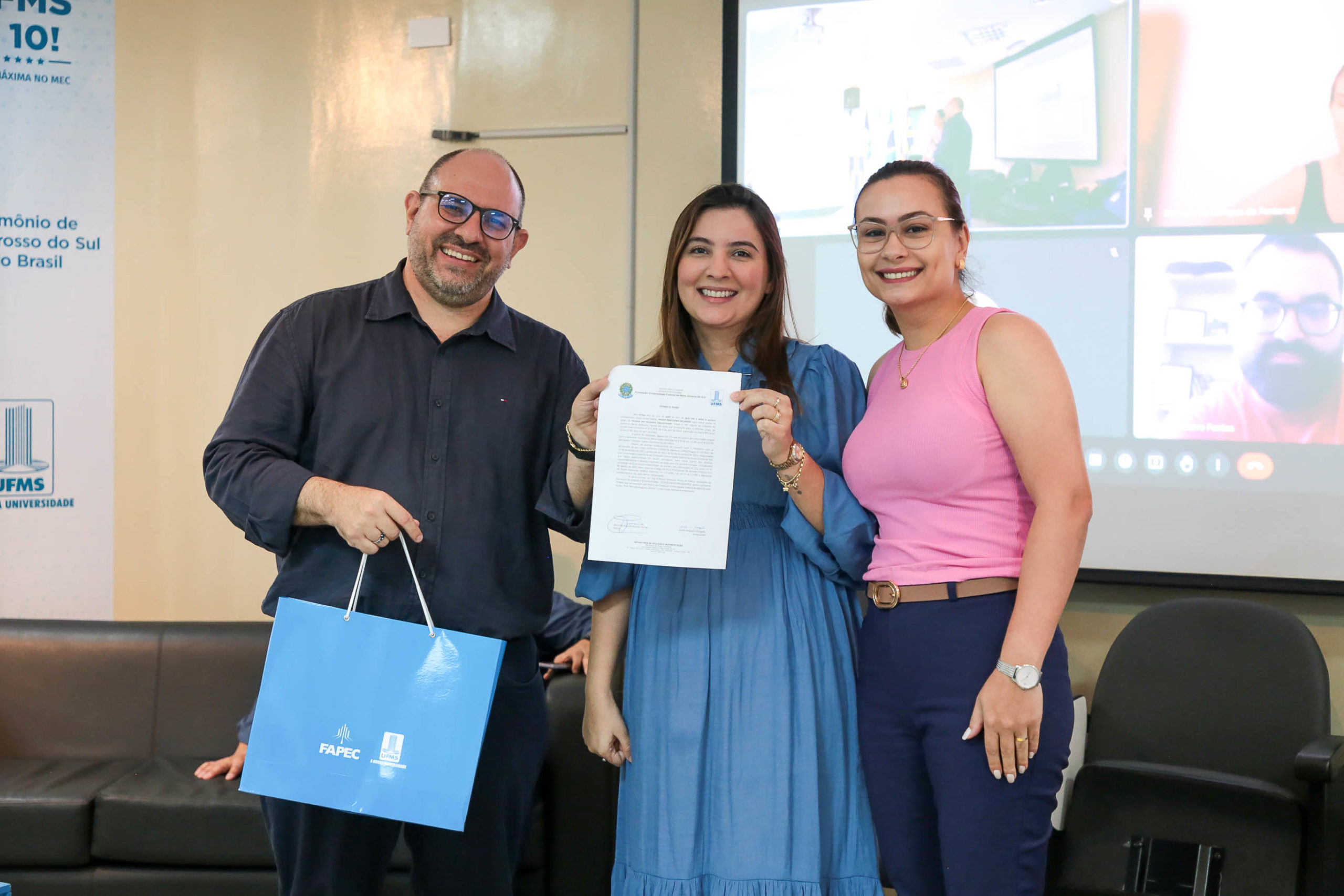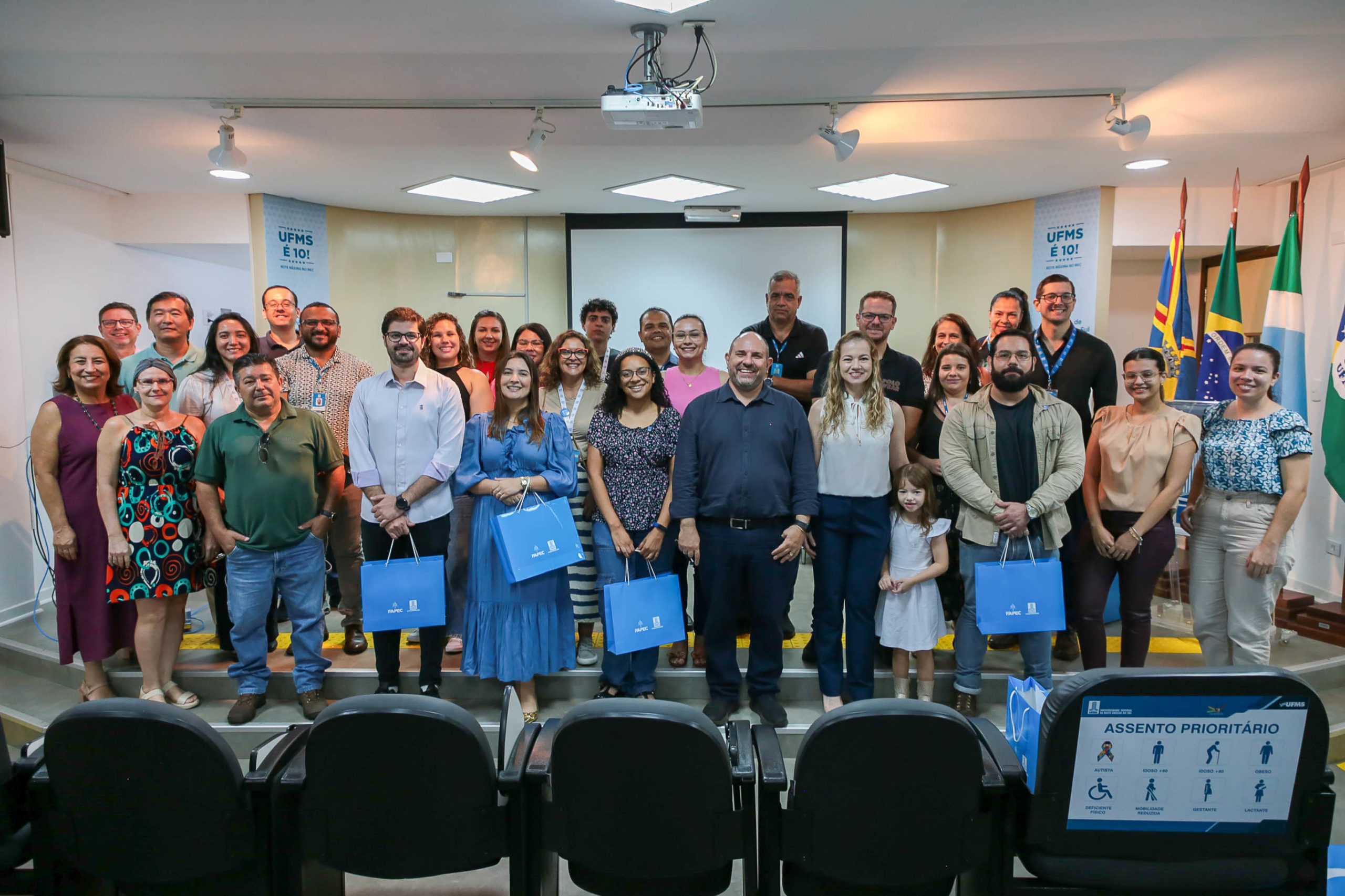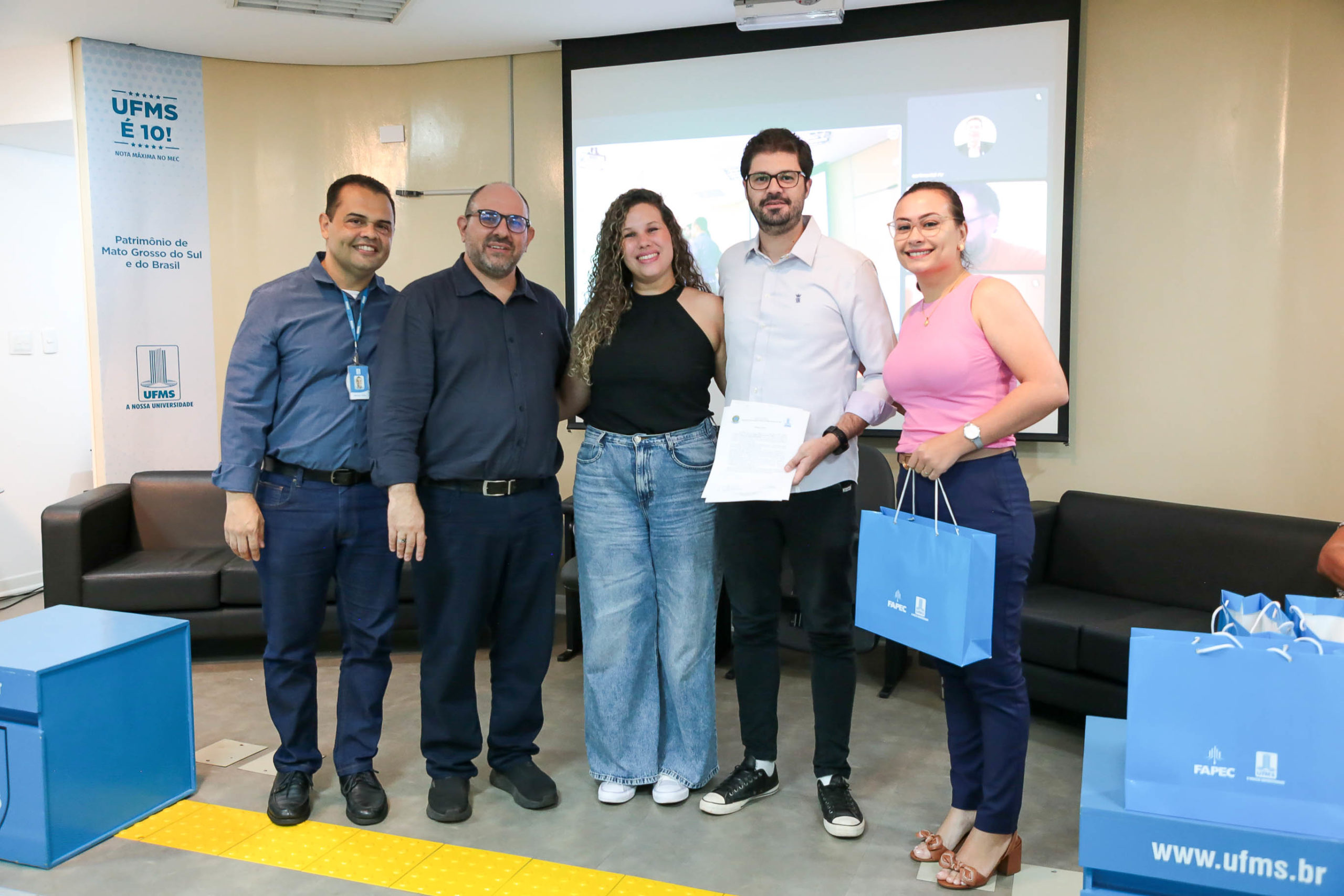 A cerimônia de posse de cinco servidores ocorreu nesta terça-feira, 30, na Cidade Universitária. Entre os empossados, dois atuarão na Pró-Reitoria de Administração e Infraestrutura (Proadi), enquanto os demais serão lotados na Faculdade de Medicina (Famed) e nos Câmpus do Pantanal (CPan) e de Três Lagoas (CPTL). A solenidade foi acompanhada por familiares e outros servidores da Cidade Universitária.