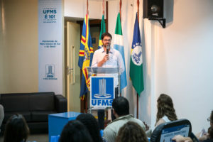 O técnico de laboratório Diego Azevedo Zoccal Garcia fez o discurso em nome dos colegas servidores. “Primeiramente, eu gostaria de agradecer a Deus por esse momento inicial nas nossas vidas. Agradecemos também a presença dos nossos familiares e amigos, por ter nos ensinado questões de valores e princípios, nos fizeram chegar neste momento. Que hoje seja o primeiro dia de uma nova fase de nossas vidas, sempre conduzida pela ética, pelo respeito. E como servidores da UFMS, possamos sempre contribuir com a formação de cidadãos críticos, e uma sociedade sustentável, e que futuramente nossos filhos, nossos netos, nossos filhos, nossos netos tenham orgulho desse trabalho que vamos desenvolver aqui dentro”.