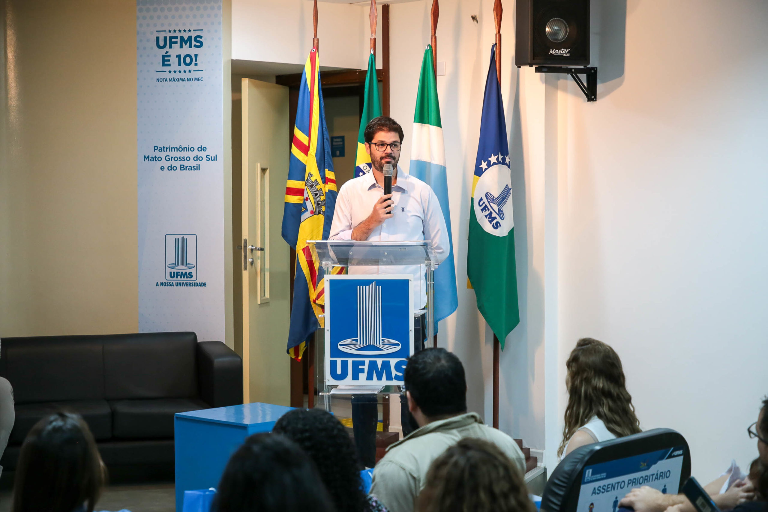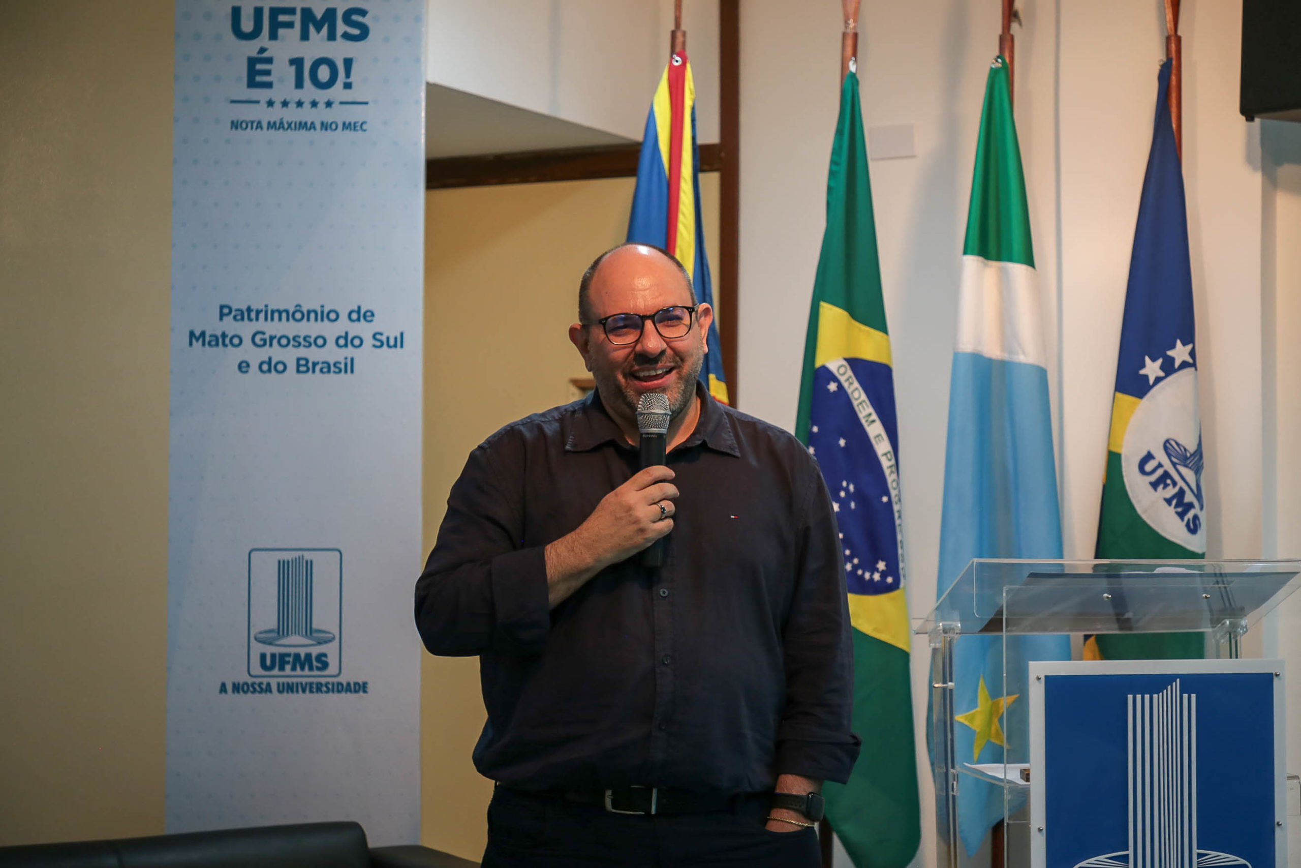 “É motivo de bastante alegria recebê-los na casa da educação. Muito mais feliz ainda em receber nossos servidores na Proadi […] Quero desejar a vocês que sejam muito bem-vindos e bem-vindas, e dizer que nós estamos muito gratos com a escolha de vocês pela UFMS”, afirmou o diretor de Gestão de Contratações, Márcio de Aquino, neste ato representando o pró-reitor de Administração e Infraestrutura, Augusto Cesar Portella Malheiros.