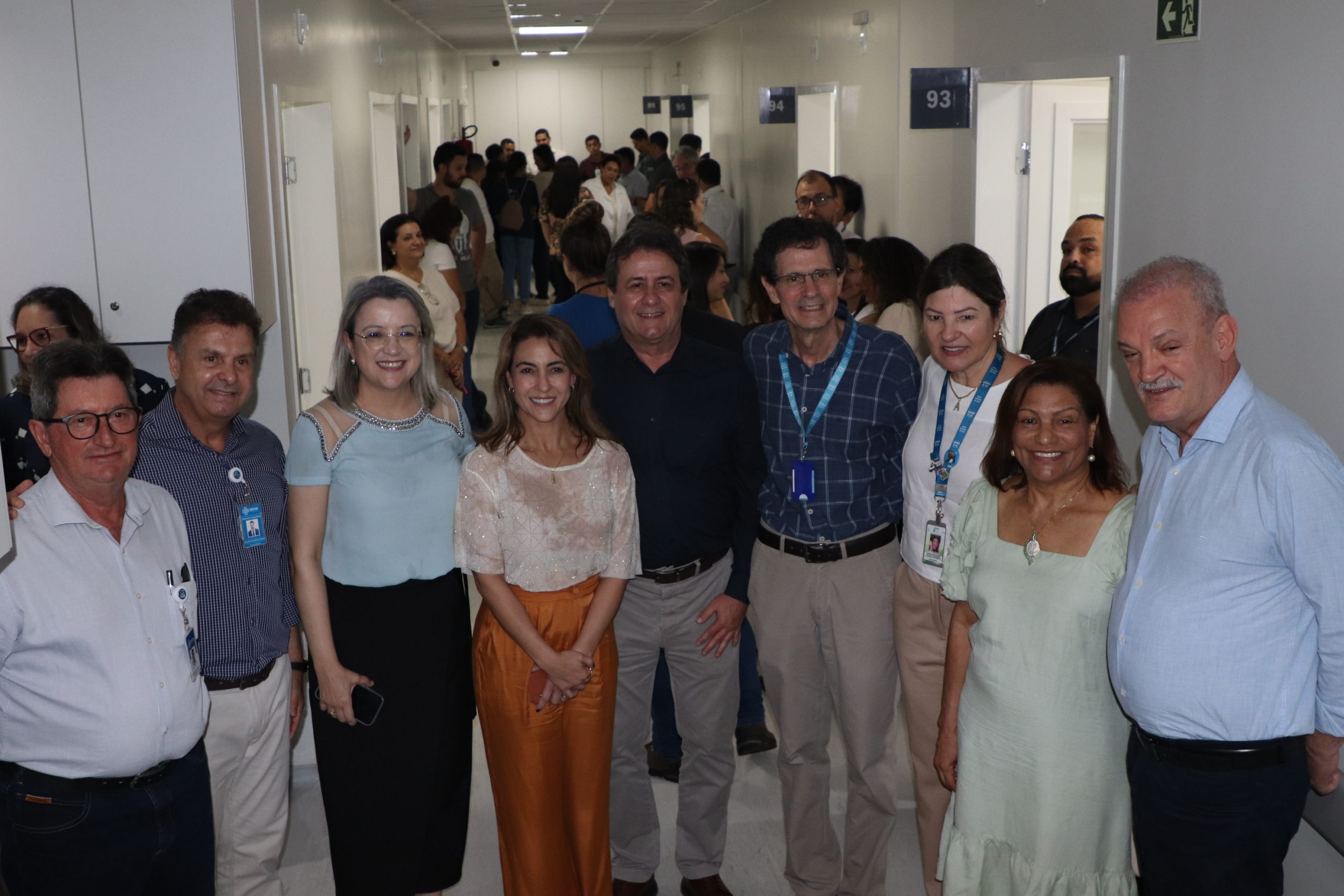A reitora Camila Ítavo e o vice-reitor Albert Schiaveto participaram da entrega de 25 leitos da primeira fase de reforma da Clínica Médica do Hospital Universitário Maria Aparecida Pedrossian (Humap-UFMS/Ebserh). O evento teve a presença de autoridades da Universidade, do Governo do Estado, Ministério Público Federal e da bancada federal nesta segunda-feira, 9.