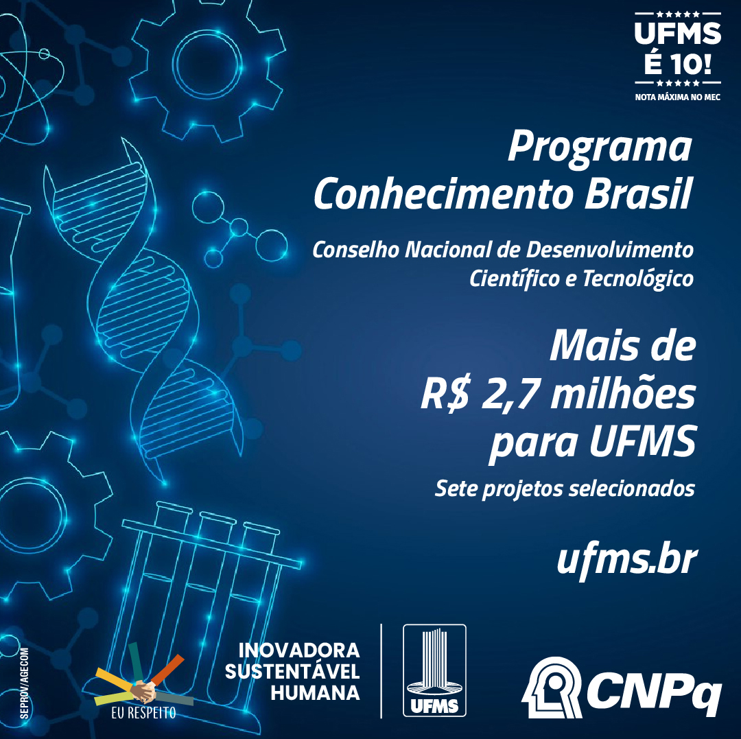 O Conselho Nacional de Desenvolvimento Científico e Tecnológico (CNPq) divulgou o resultado final da chamada para Apoio a Projetos em Rede do Programa Conhecimento Brasil. Sete pesquisadores da UFMS foram contemplados e irão receber recursos aproximados de R$ 2,7 milhões em investimentos nos projetos de pesquisa aprovados.