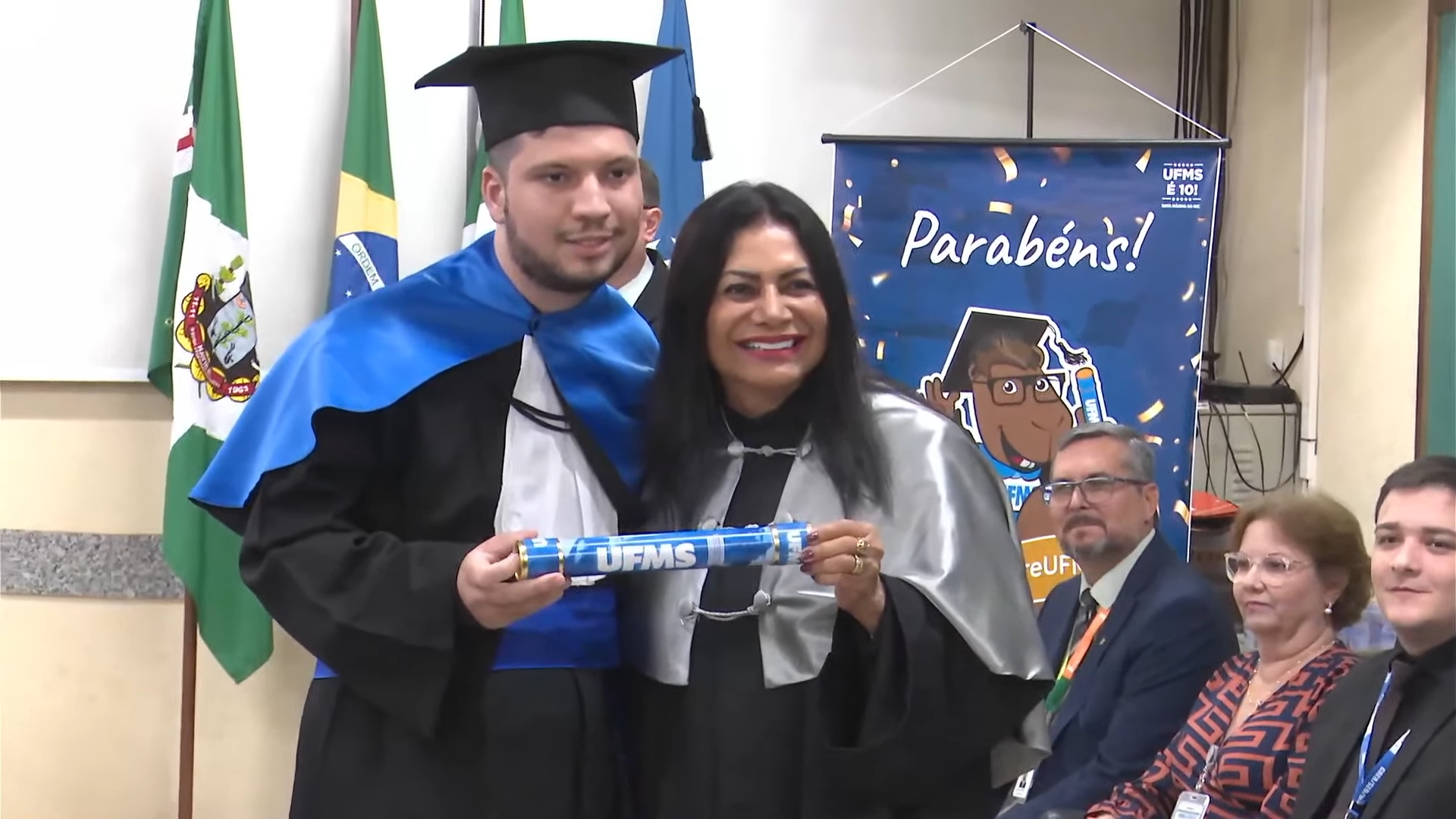 O diretor do CPNV, Marco Antonio da Silva, saudou os concluintes. “A gente trabalha há pelo menos quatro anos por este momento. A gente faz um trabalho importante de pesquisa, extensão, inovação e empreendedorismo, mas o que a gente mais espera é por este momento, de ouvir que isso tudo é importante, que a gente espera que vocês transformem a sociedade, que sejam agentes de mudança. E nós nunca estivemos em um momento tão necessário de que jovens assumam posições na sociedade como agora. Enquanto servidor público, a gente se sente muito honrado de estar em uma colação de grau em uma Instituição de ensino pública, gratuita, de qualidade. Uma vez UFMS, sempre UFMS”, ressaltou.