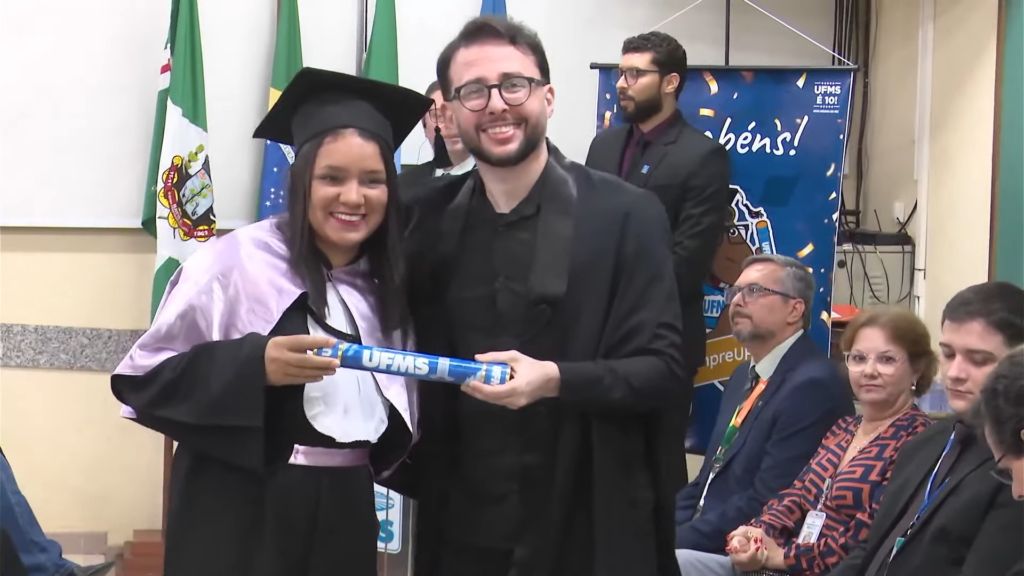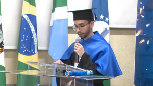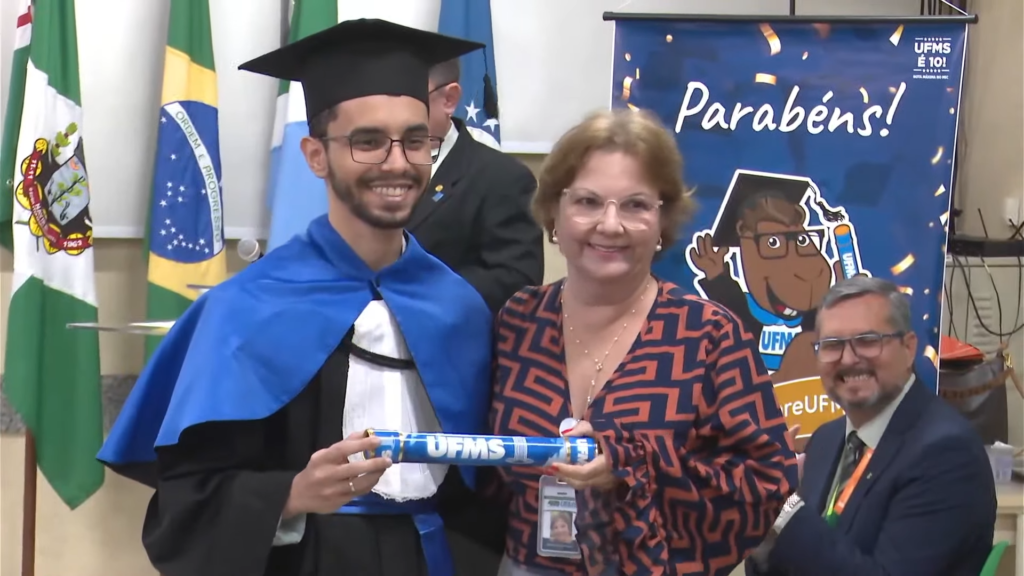 Já o bacharel em Arquitetura e Urbanismo Pedro Henrique de Oliveira foi o orador representante das turmas que colaram grau. “O significado deste momento é imenso. Estamos não apenas como formandos de um único curso, mas como representantes de diversas áreas de conhecimento que, juntas, mostram a força e a vontade da nossa Instituição. Carrego com orgulho a missão de representar a primeira turma de Arquitetura e Urbanismo do Câmpus da UFMS de Naviraí. Iniciamos essa jornada em 2020, um ano marcado pela pandemia. Adaptamos nossos caminhos e construímos nosso futuro, mesmo em meio às incertezas. Todos, sem exceção, compartilham algo em comum: a dedicação, a persistência e o desejo genuíno de transformar o mundo a partir da profissão que escolheram”, pontuou.