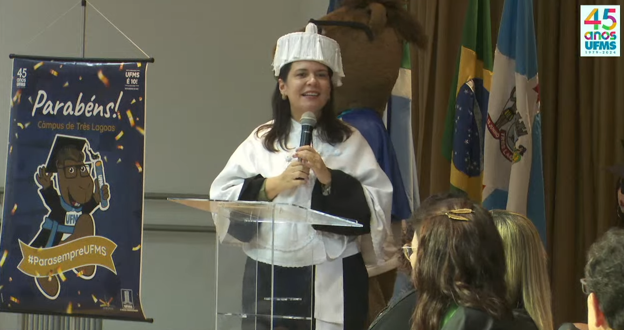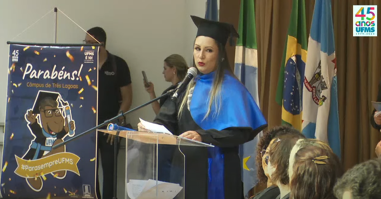 A diretora do CPTL, Larissa da Silva Barcelos, agradeceu aos servidores, familiares e formandos por acreditarem na educação e na Universidade. “Hoje, por meio do Câmpus de Três Lagoas, entregamos novos profissionais formados em uma Instituição pública, gratuita, de qualidade e inclusiva. Isso nos enche de orgulho. […] Essa conquista é um símbolo da importância da Universidade pública no desenvolvimento social e científico do país”.