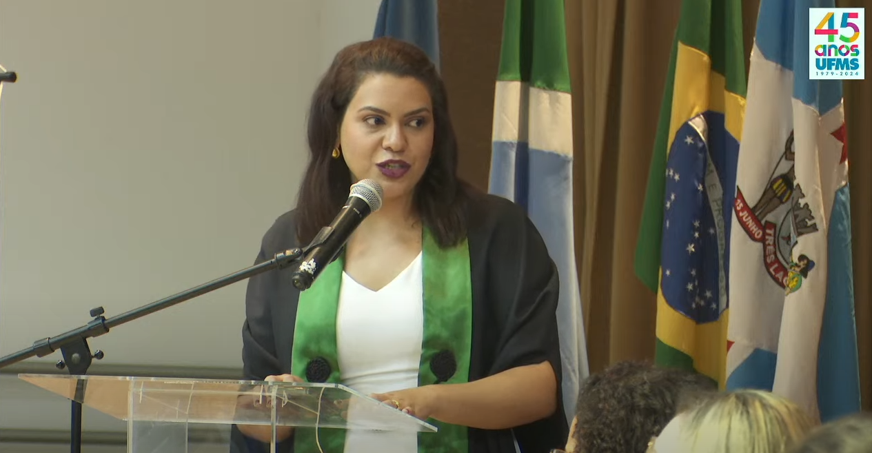 A bacharel em Administração Grazielle Martinelli de Oliveira discursou em nome dos colegas e agradeceu aos professores, à UFMS, aos familiares e aos colegas que fizeram parte deste ciclo. “Durante essa jornada, tivemos o privilégio de aprender com essas pessoas maravilhosas e que sempre nos provocaram a ir além. Vocês foram nossos mentores e com suas observações nos fizeram refletir, crescer e melhorar, obrigada!”