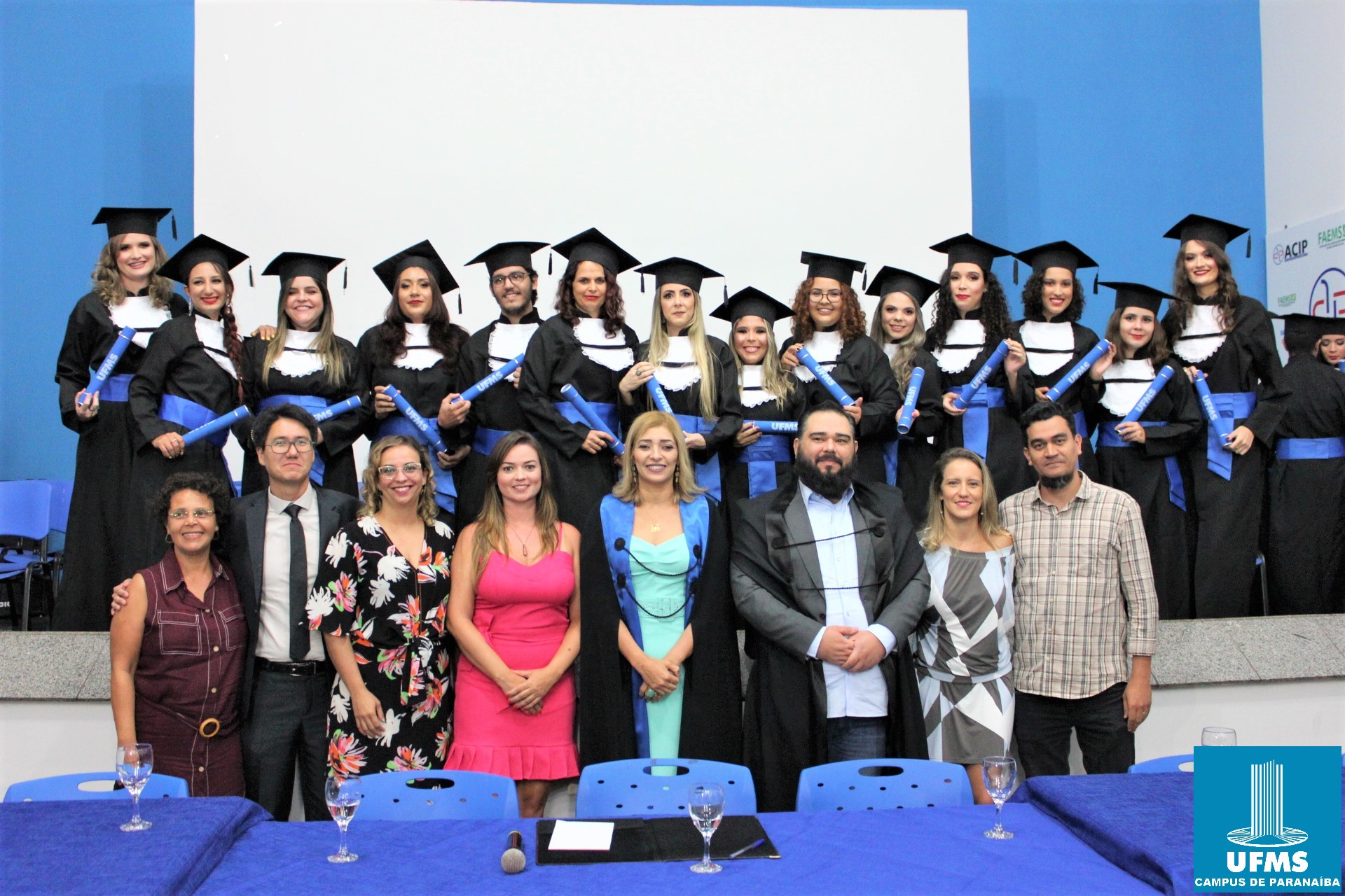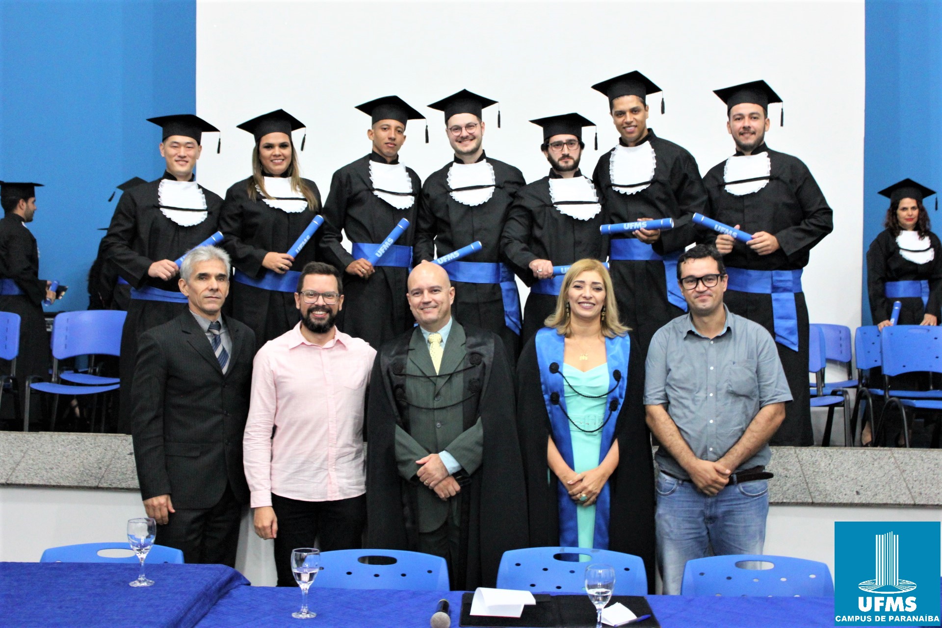 Nesta segunda-feira, 10, a UFMS teve papel marcante no encerramento da jornada de 27 jovens dos cursos de Psicologia, Matemática e Administração do campus de Paranaíba que receberam o tão sonhado diploma. A solenidade contou com a presença do reitor Marcelo Turine, da vice-reitora Camila Ítavo, do pró-reitor de Administração e Infraestrutura Augusto Cesar Malheiros além de familiares, amigos e servidores.