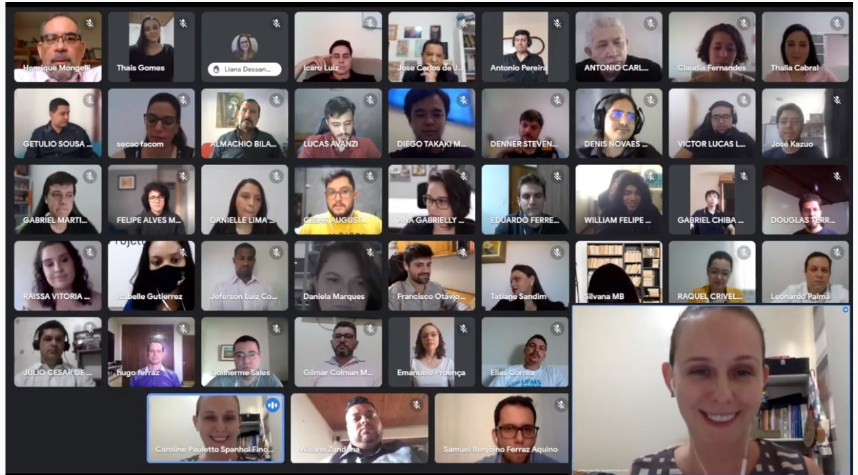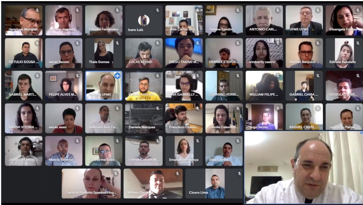 Estudantes de 12 cursos participaram da colação de grau por videoconferência, na tarde desta quinta-feira, 19. No total, a cerimônia reuniu 124 concluintes de cursos oferecidos pela Escola de Administração e Negócios (Esan) e pela Faculdade de Computação (Facom). Familiares e amigos acompanharam a transmissão por meio do Canal da TV UFMS no YouTube.
