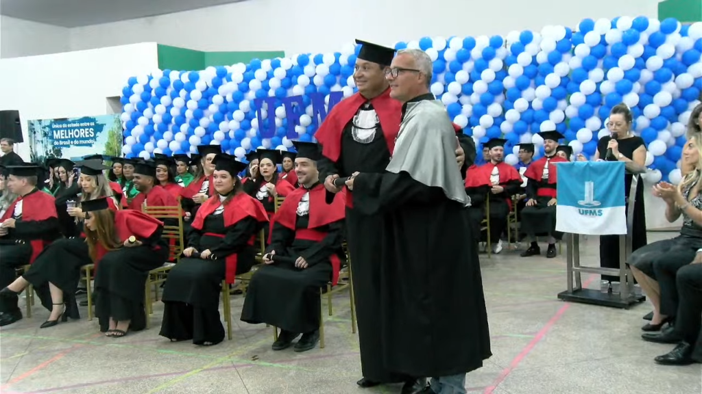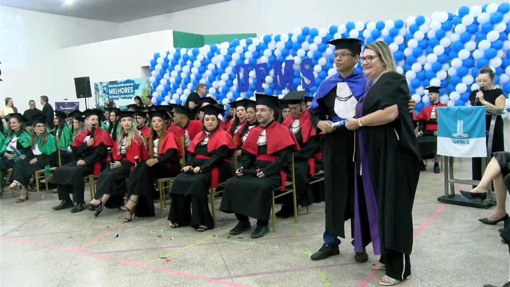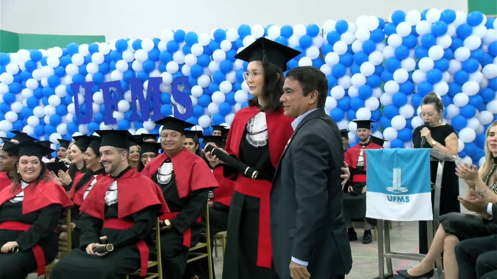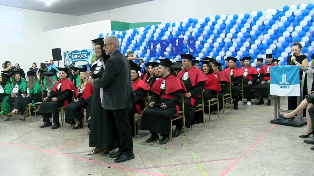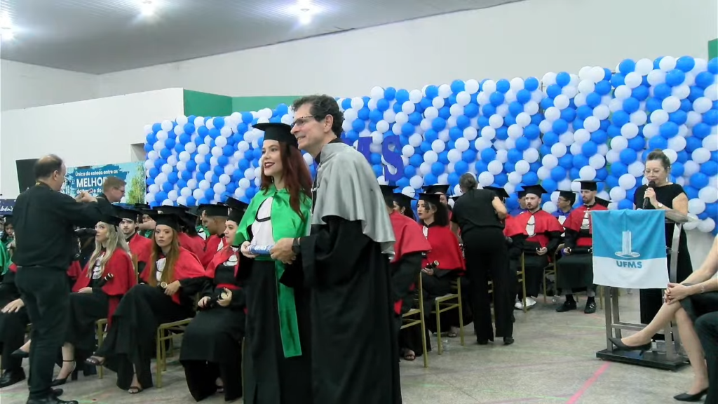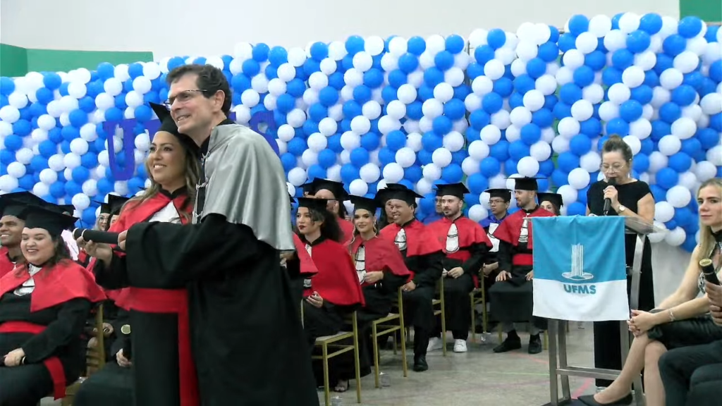 O paraninfo e professor da turma de Sistemas de Informação, Darcy Molin Brun, representou todos os homenageados. “Vocês se formam em um momento histórico. Nunca a humanidade precisou tanto de profissionais capazes de traduzir necessidades humanas em soluções tecnológicas. Vocês levam hoje o nome da UFMS. O que é novo hoje, é legado amanhã. Mantenham a curiosidade sempre viva. Sejam resilientes. Esse diploma que conseguiram hoje não é apenas esforço de vocês. Tem uma grande parcela deles nisso. O mundo está pronto para ser guiado por vocês. Não tenham medo de inovar, de liderar, de fazer a diferença. Vão lá e mostrem a força da UFMS. Muito sucesso para vocês e muito obrigado a todos”, celebrou.