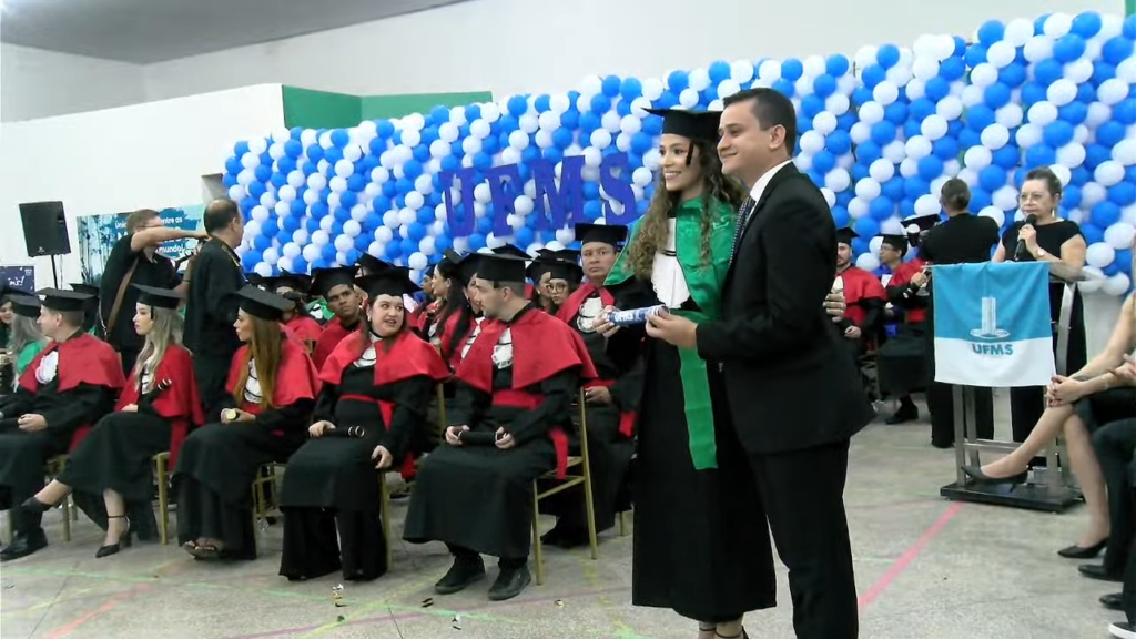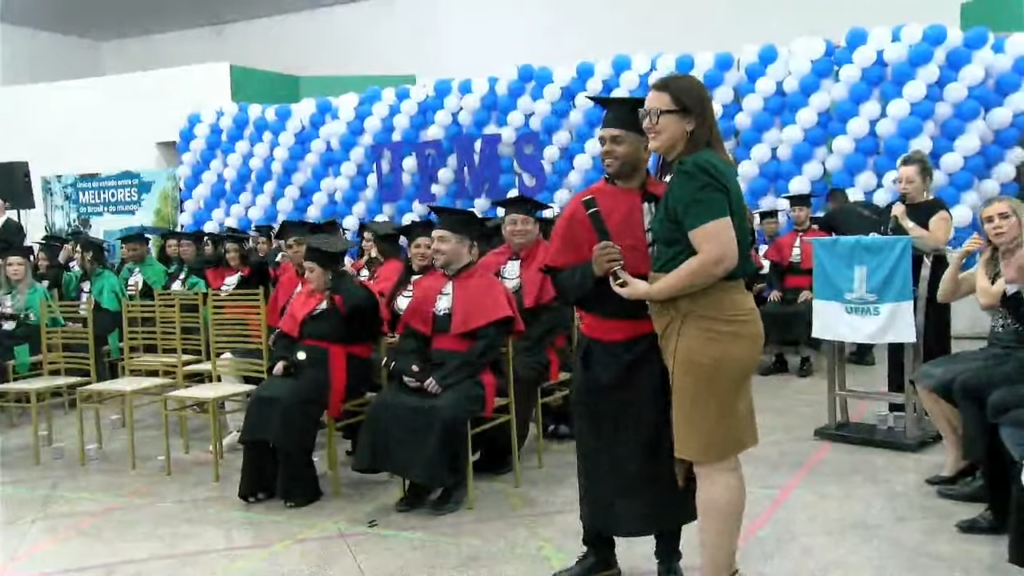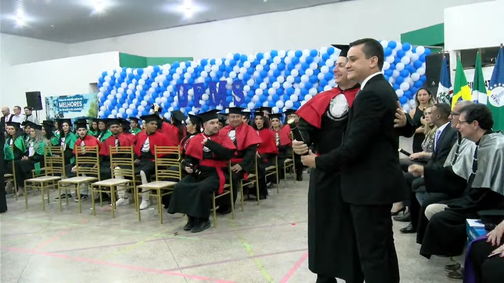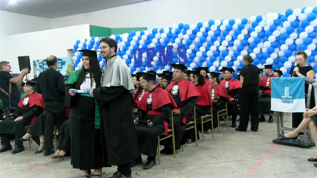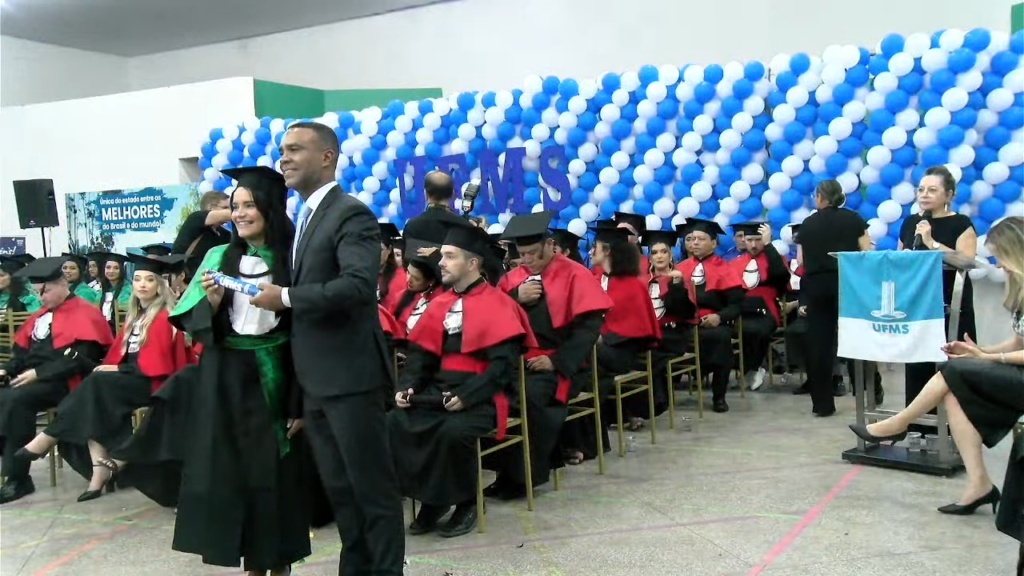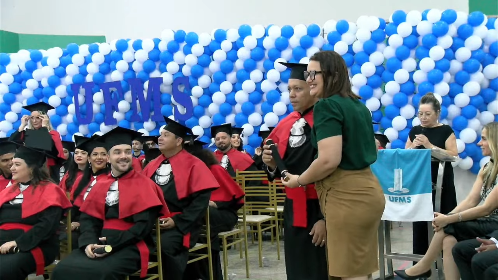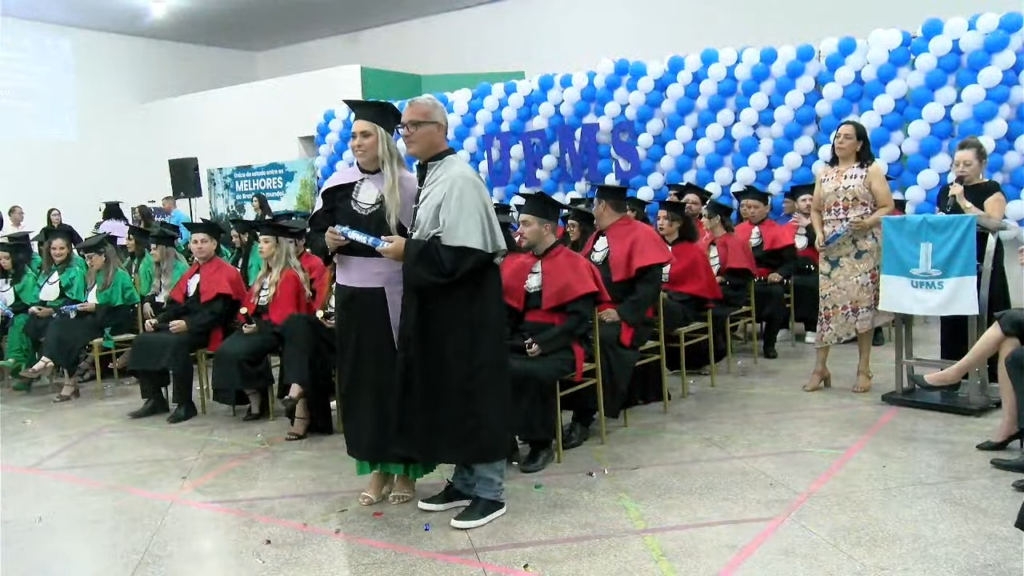 O paraninfo e professor da turma de Sistemas de Informação, Darcy Molin Brun, representou todos os homenageados. “Vocês se formam em um momento histórico. Nunca a humanidade precisou tanto de profissionais capazes de traduzir necessidades humanas em soluções tecnológicas. Vocês levam hoje o nome da UFMS. O que é novo hoje, é legado amanhã. Mantenham a curiosidade sempre viva. Sejam resilientes. Esse diploma que conseguiram hoje não é apenas esforço de vocês. Tem uma grande parcela deles nisso. O mundo está pronto para ser guiado por vocês. Não tenham medo de inovar, de liderar, de fazer a diferença. Vão lá e mostrem a força da UFMS. Muito sucesso para vocês e muito obrigado a todos”, celebrou.